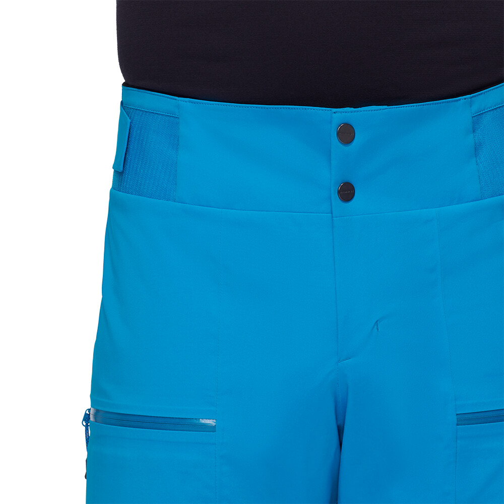 Syntetyczna izolacja zapewnia komfort termiczny. Dwuwarstwowy materiał 2L Mammut DRY Tour ochroni Cię podczas opadów śniegu lub lekkiego deszczu. Jednocześnie materiał jest wiatroszczelny i oddychający. Wzmocnienie nogawek z materiału Cordura® chroni nogi przed przecięciem przez ostre krawędzie nart. Boczny zamek błyskawiczny umożliwia regulację temperatury. Regulowany pas w talii zapewnia idealne dopasowanie. Mnóstwo kieszeni pozwala mieć wszystko pod ręką. Spodnie posiadają wewnętrzne mankiety przeciwśnieżne.