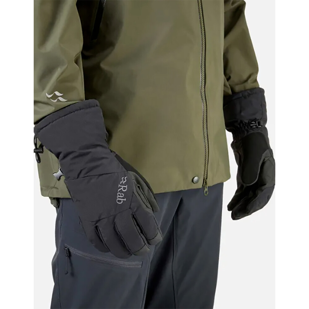 Ciepłe, wodoodporne rękawice na mroźne zimowe dni. Używaj tych rękawic z ładnym logo Rab® na grzbiecie dłoni podczas wycieczek, w drodze do pracy lub podczas zabawy na śniegu.