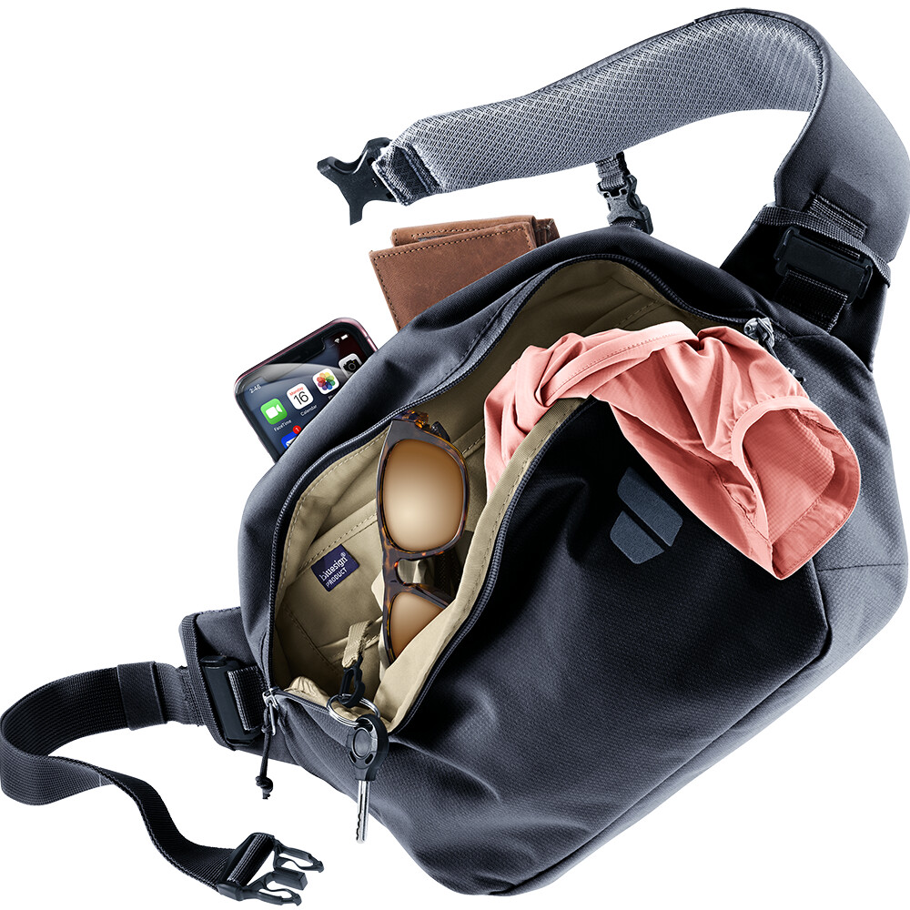 Stylowa torba na ramię Stroof 5 firmy deuter pozwala z łatwością wyjść na miasto, nawet jeśli potrzebujesz więcej rzeczy. Główna kieszeń pomieści portfel, okulary, a nawet koszulkę z długim rękawem. Jest też oddzielna, wyściełana przegroda na tablet. Dzięki regulowanemu paskowi można ją nosić na ramieniu lub w poprzek ciała. Dodatkowo posiada odpinany pasek piersiowy, który sprawia, że torba lepiej trzyma się na ciele i można ją nosić na lewym lub prawym ramieniu.