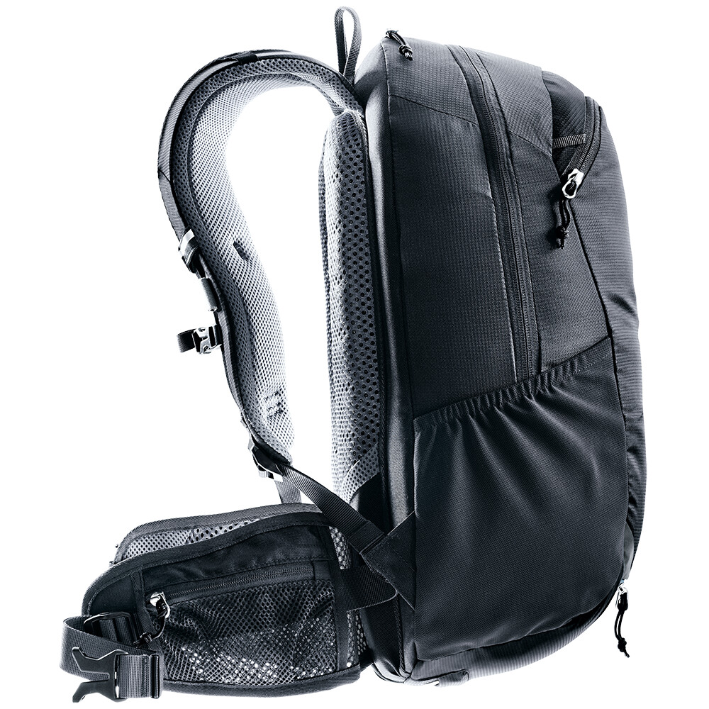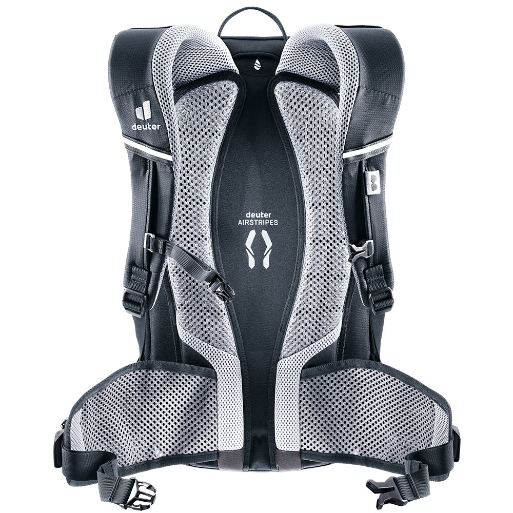 Plecak Superbike 18 został zbudowany w oparciu o sprawdzony system pleców Airstripes wzmocniony aluminiowymi prętami, który zapewnia pewne i bezpieczne dopasowanie do pleców dzięki ergonomicznym paskom naramiennym i dwukierunkowemu paskowi mostkowemu. Oznacza to, że plecak nie ogranicza zręczności podczas wędrówek lub trudnych zjazdów. Jednocześnie docenisz doskonały komfort przez cały dzień i odpowiednią wentylację między plecakiem a pocącymi się plecami. Pas biodrowy jest wykonany z siatki dla lepszej wentylacji i posiada kieszeń zapinaną na zamek.