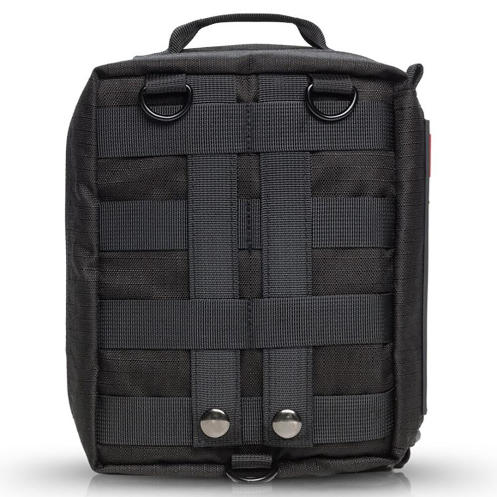 Zestaw nadaje się do samochodu, w podróży, w domu, w biurze lub podczas aktywności na świeżym powietrzu. Oferuje doskonałe wyposażenie w kompaktowej obudowie, zapewniając niezbędne narzędzia do leczenia drobnych urazów i poważniejszych obrażeń bez zajmowania dużo miejsca. Wytrzymały pokrowiec z poliestru 600D Oxford chroni zawartość przed uszkodzeniami i wilgocią. Wysokiej jakości zamki błyskawiczne i system kompatybilny z MOLLE umożliwiają łatwe mocowanie do sprzętu, plecaka lub pojazdu.