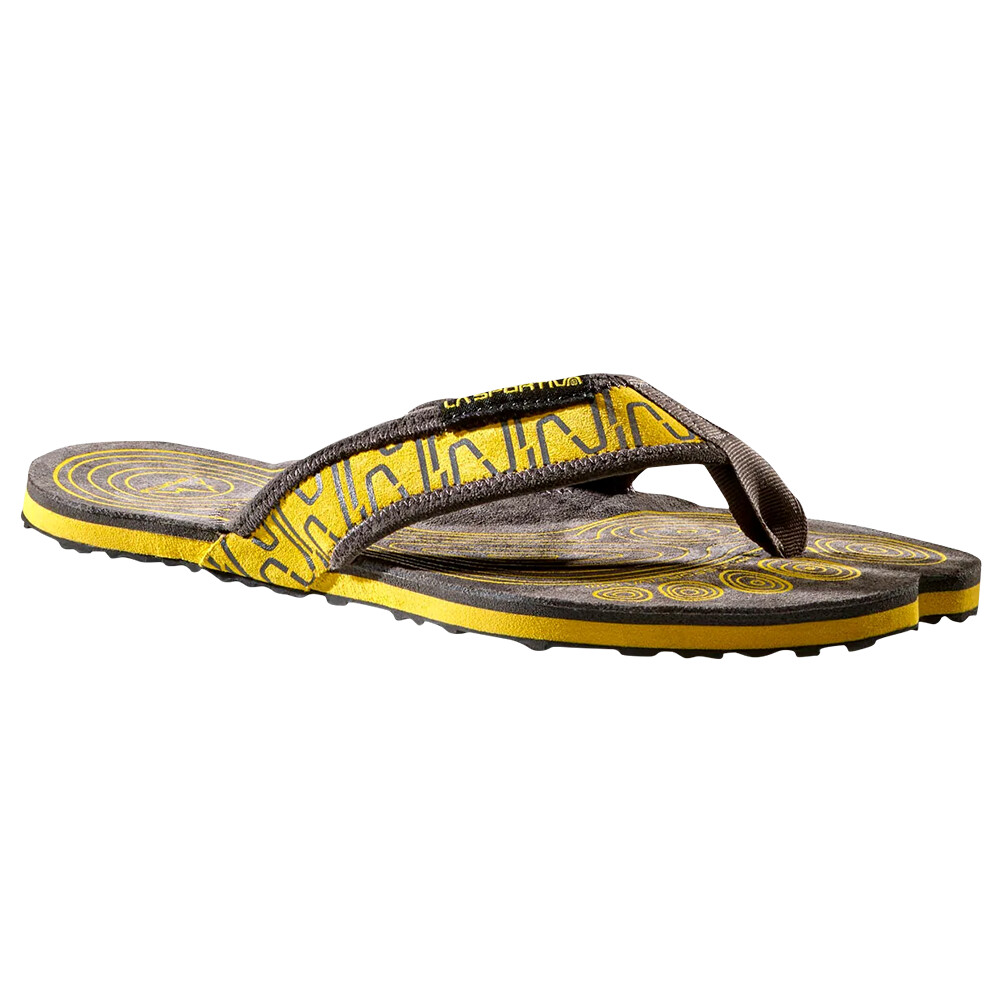 Stylowe japonki La Sportiva, które można zabrać pod skałę jako obuwie relaksacyjne, do miasta lub nad wodę. Dzięki podeszwie FriXion XF te japonki nie ślizgają się.