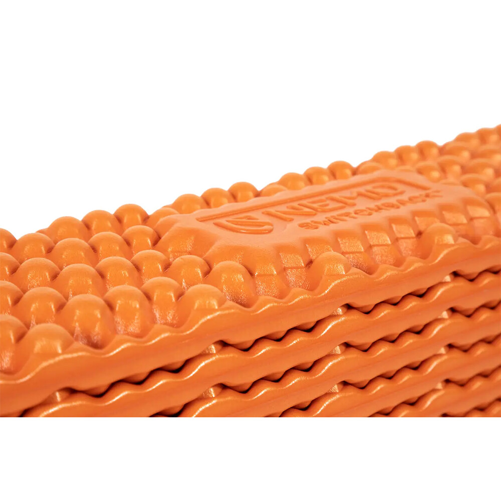 Switchback od Nemo zapewnia większy komfort i mniejszą wagę w kategorii pianek. Jego unikalny sześciokątny wzór wypustek sprawia, że jest bardziej miękki, łatwiejszy do złożenia, a także mniej kompresuje izolację w śpiworze podczas snu, zapewniając ogólnie większy komfort termiczny. Dzięki swojej mechanicznej "niezniszczalności" nadaje się do letnich wypraw wysokogórskich, trzysezonowych wędrówek lub może być używana jako podkładka ochronna pod nadmuchiwany materac samochodowy.