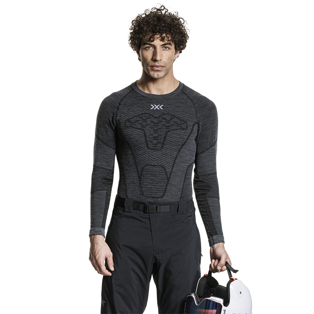 Przeciwstaw się zimowym żywiołom dzięki wysokowydajnej koszulce SYMBIO MERINO SHIRT LS MEN włoskiej marki X-BIONIC®. Połączenie naturalnego włókna wełny merynosów i najnowocześniejszej technologii zapewnia idealny komfort termiczny i swobodę ruchów.