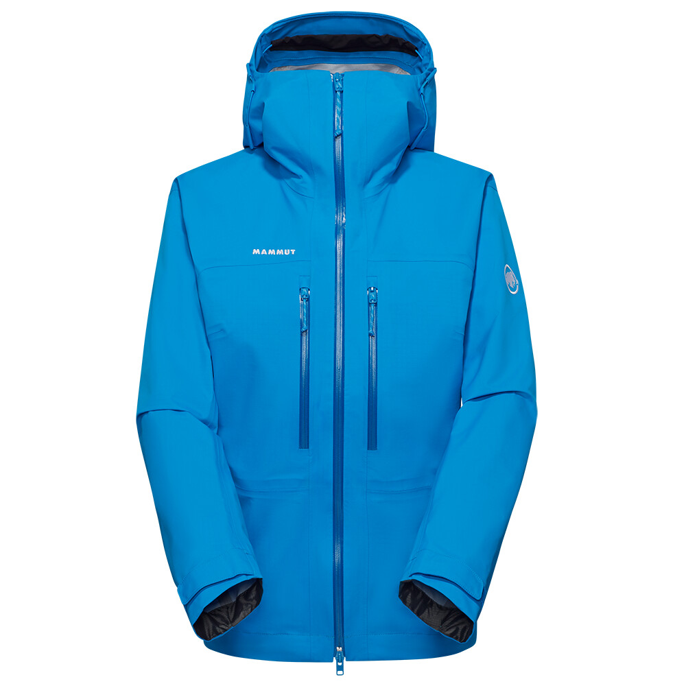 Kurtka została wykonana z materiału Mammut DRY Expedition, który jest niezwykle oddychający, wodoodporny i wiatroszczelny. Tkanina ripstop zapewnia wyjątkową trwałość. Sportowy damski krój zapewnia swobodę ruchów. Regulowany kaptur jest kompatybilny z kaskiem. Dwie zapinane na zamek kieszenie są łatwo dostępne, nawet gdy masz założoną uprząż wspinaczkową lub zapięty pas biodrowy. Małe przedmioty można przechowywać w wewnętrznej kieszeni na suwak. Zapinana na zamek wentylacja pod pachami umożliwia regulację temperatury. Rękawy mają regulowane mankiety, które można obsługiwać nawet w rękawiczkach. Dolny dół jest również regulowany.