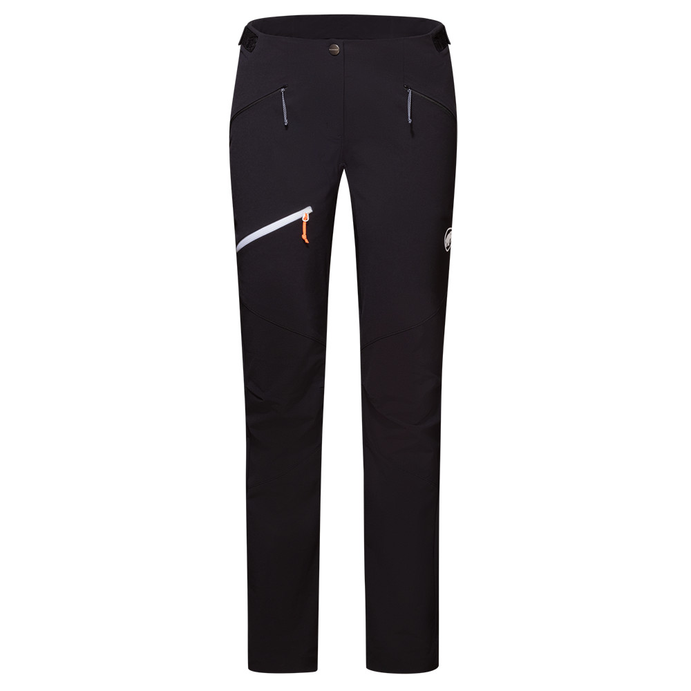Spodnie są wykonane z wytrzymałego i oddychającego softshellu. Wodoodporne wykończenie chroni przed lekkim deszczem. Regulowany pas idealnie dopasowuje się do sylwetki. Dwie zapinane na zamek kieszenie są również dostępne w uprzęży wspinaczkowej lub z pasem biodrowym plecaka. Na nogawce znajduje się poręczna kieszeń zapinana na zamek. Spodnie mają asymetrycznie ukształtowany dół ze sznurkiem dla optymalnego dopasowania do butów wspinaczkowych.