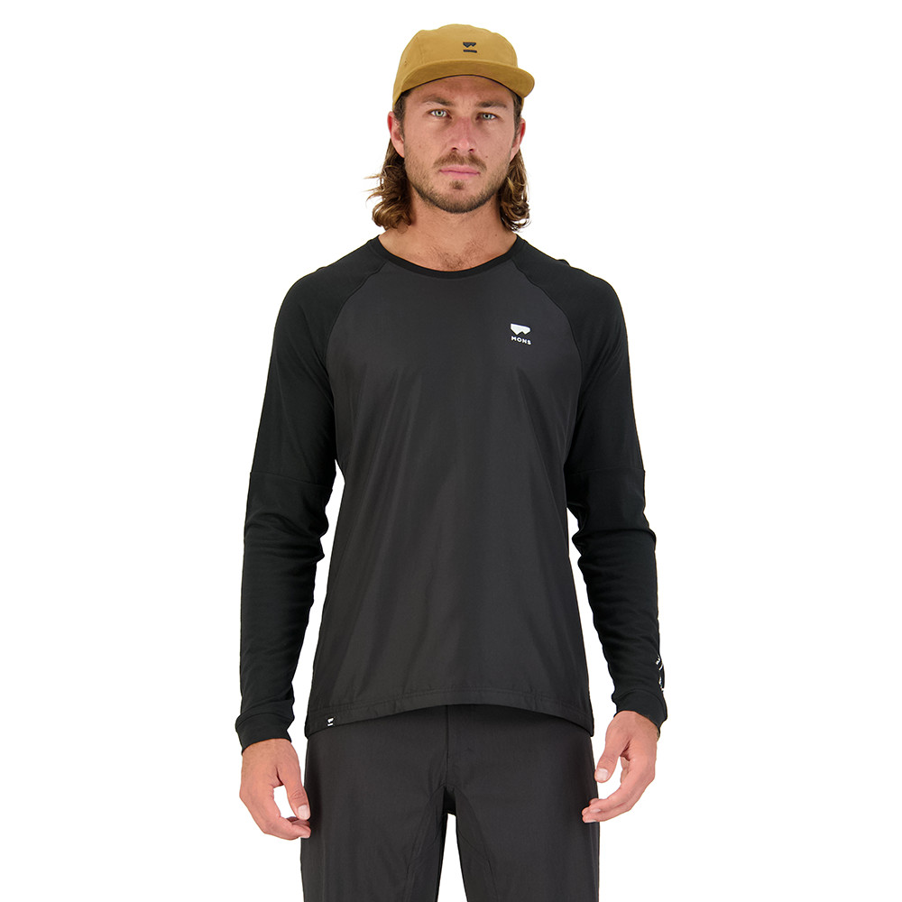 Męska koszulka z długim rękawem Tarn Merino Shift Wind Jersey od Mons Royale stanie się niezbędnym elementem rowerowym na chłodne dni. Pogoda Cię nie powstrzyma, ponieważ ta koszulka ochroni Cię przed zimnem i wiatrem dzięki poliestrowemu ripstopowi z przodu z podszewką z merynosów. Dzianina Merino Shift™ to szybkoschnąca mieszanka ultralekkich merynosów, uzupełniona poliestrem z recyklingu. Delikatna wełna merino zapewnia naturalną termoregulację. W związku z tym w rzeczywistości nieco chłodzi podczas energicznego ruchu i dobrze izoluje podczas niskiej aktywności ruchowej. Ponadto jest naturalnie antybakteryjna, więc zapobiega rozwojowi i namnażaniu się bakterii powodujących nieprzyjemny zapach. Koszulka ma luźny krój, a raglanowe rękawy dbają o dodatkową mobilność. Ukryta kieszeń na okulary przeciwsłoneczne jest atrakcją.