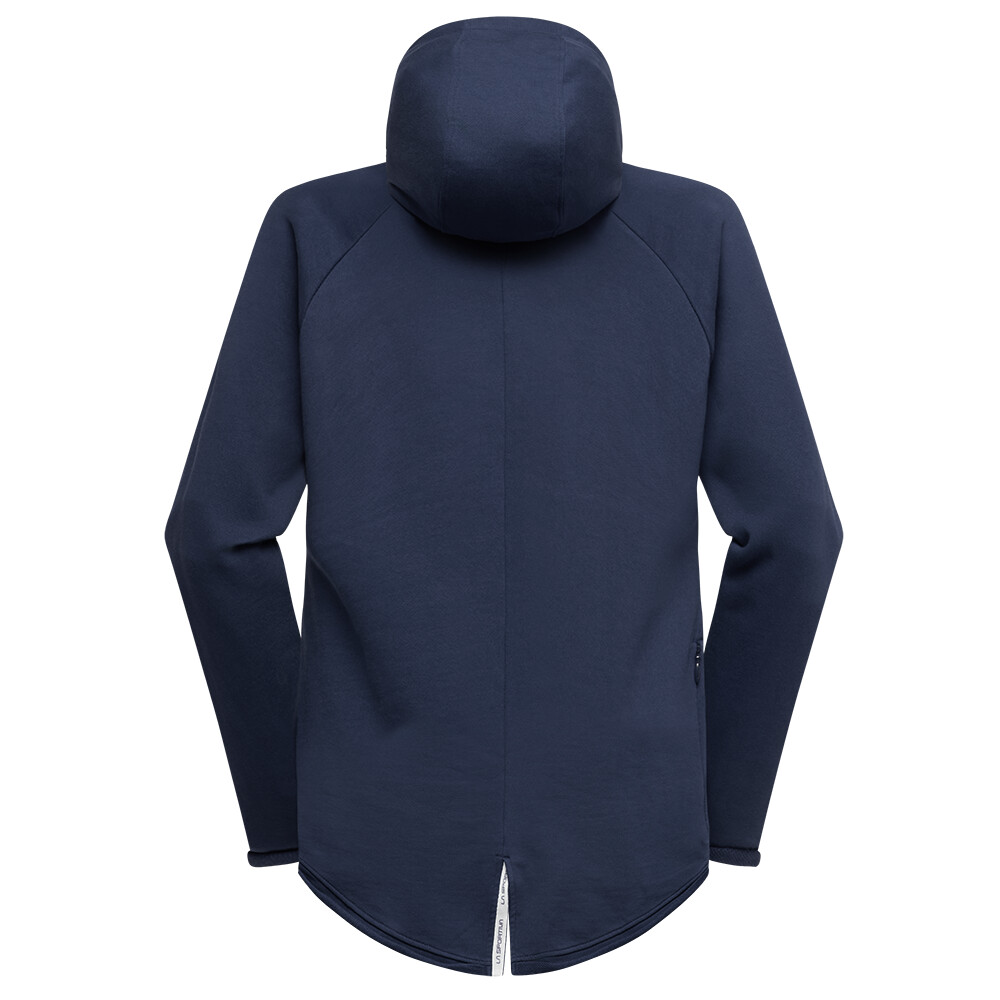 Bluza jest wykonana z miękkiej bawełny organicznej, która jest ciepła i oddychająca. Sportowy krój z kapturem idealnie dopasowuje się do sylwetki. W bocznej kieszeni na suwak można przechowywać legginsy. Inne drobne przedmioty można przechowywać w dużej przedniej kieszeni.