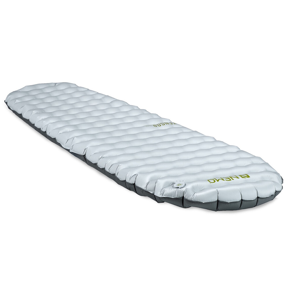 Tensor Elite od Nemo ma najniższą wagę na rynku, wynoszącą zaledwie 235 g (rozmiar regularny), wśród materacy dmuchanych.Szczególnie docenisz jego wyjątkowo niską wagę i niewielkie rozmiary po spakowaniu, zwłaszcza podczas długodystansowych wędrówek lub jazdy na rowerze, ponieważ zajmuje tyle miejsca w plecaku, co półlitrowa butelka wody. Aby zapewnić komfort termiczny, wewnątrz materaca znajduje się warstwa materiału izolacyjnego Thermal Mirror™, który zapobiega przenikaniu zimna do podłoża, jednocześnie skutecznie odbijając ciepło ciała.