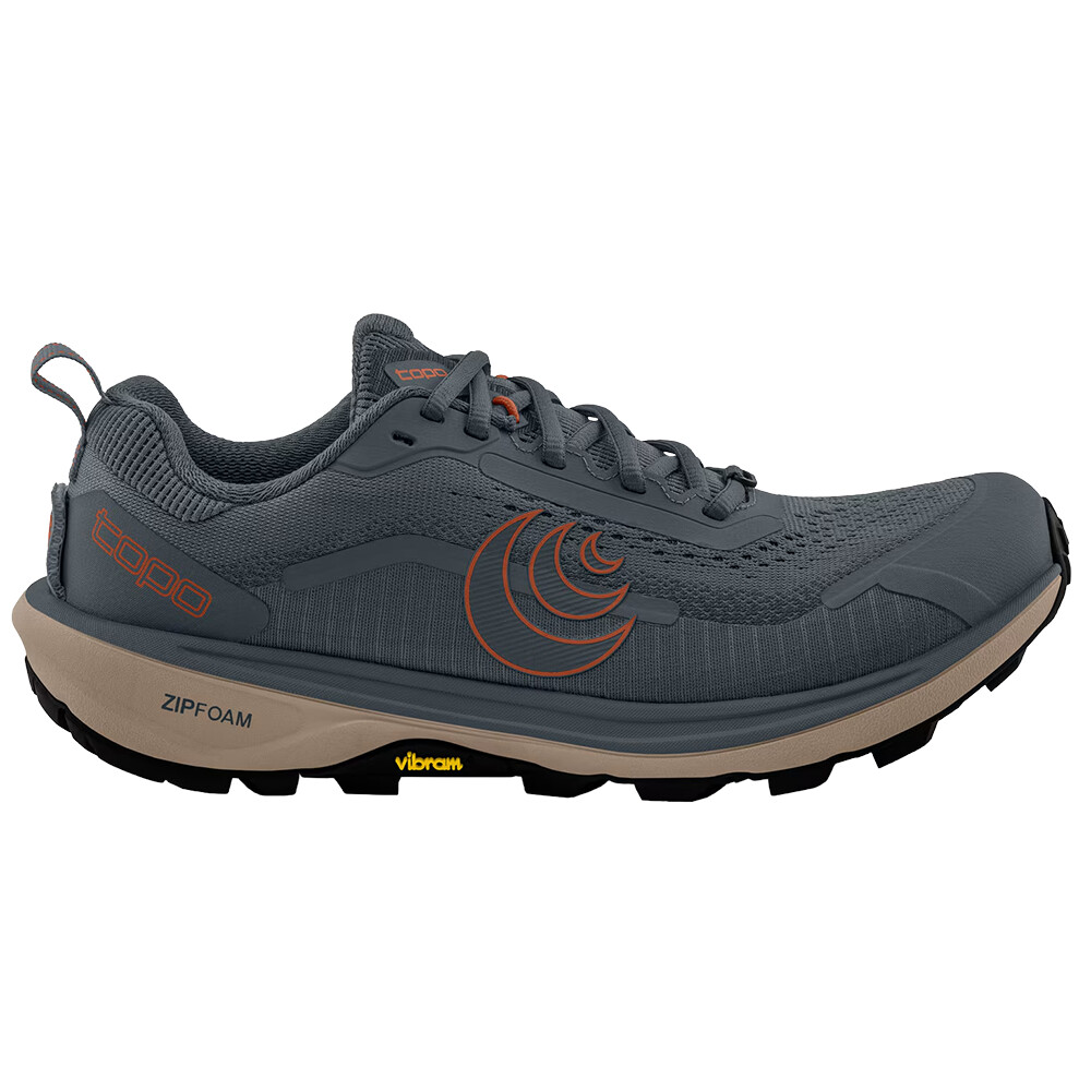 Buty trailowe uwielbiane zarówno przez biegaczy, jak i wędrowców, Terraventure wprowadzają szereg ekscytujących ulepszeń do swojej 5. generacji. Na szczególną uwagę zasługuje cholewka z dzianiny tekstylnej o podwójnej gęstości. To rozwiązanie techniczne zwiększa trwałość i odporność buta w obciążonych obszarach. Z drugiej strony podeszwa zewnętrzna Vibram® Megagrip z agresywnie rozmieszczonymi wypustkami pozostaje niezmieniona. Dzięki piance ZipFoam™ z pamięcią kształtu i wkładce Rock Plate Protection zapewnia doskonałą amortyzację i ochronę podczas stąpania po ostrych krawędziach kamieni. Ogólny komfort zwiększa nienasiąkliwa wkładka Topo FKT Insole, która pomaga skutecznie odprowadzać wilgoć z wnętrza buta.