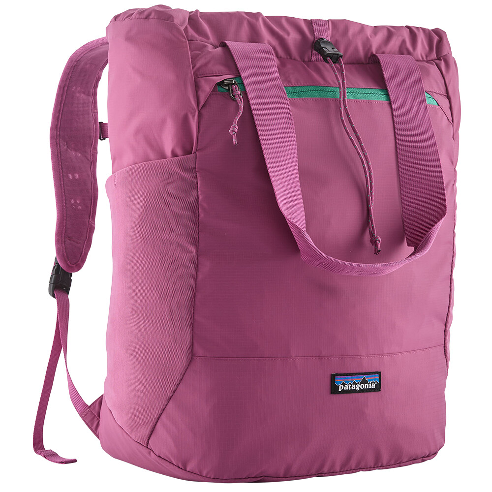 Popularny plecak Terravia Tote Pack 24 firmy Patagonia to miejski plecak 2 w 1, ponieważ można go błyskawicznie przekształcić w elegancką torbę na ramię. Jest wykonany z wytrzymałego nylonu z recyklingu z powłoką PU, dzięki czemu może wytrzymać żywioły. Przestronna komora główna jest zamykana na zamek błyskawiczny. Wokół głównej komory znajduje się również poręczny sznurek.