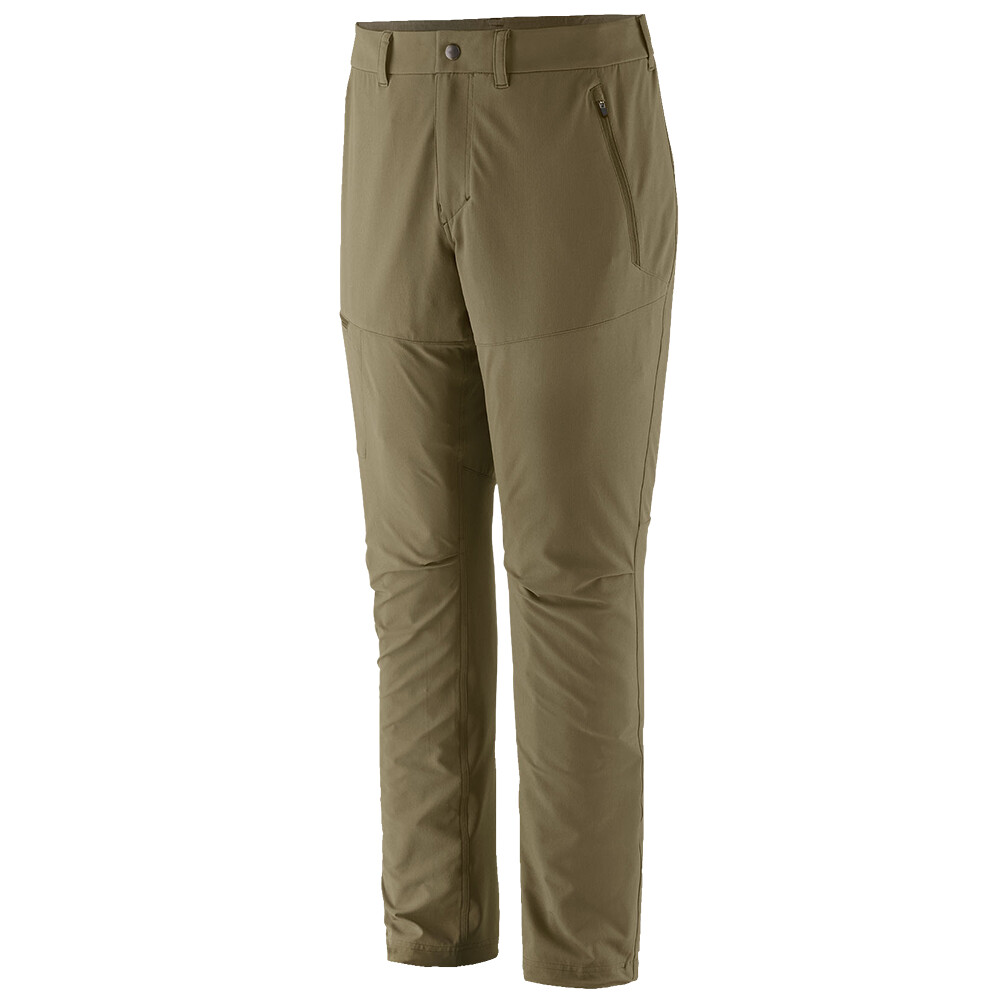 Męskie spodnie turystyczne Terravia Trail Pants marki Patagonia zostały zaprojektowane z myślą o aktywnych mężczyznach, którzy szukają równowagi między wydajnością techniczną a komfortem przez cały dzień. Wykonane są z wysoce rozciągliwego materiału z poliestru z recyklingu i elastanu, który dostosowuje się do każdego ruchu, niezależnie od tego, czy wspinasz się na strome wzgórze, czy przeskakujesz górski strumień. Męskie spodnie Terravia Trail Pants są idealnym towarzyszem wymagających wędrówek i dynamicznych aktywności na świeżym powietrzu dzięki swojej oddychalności i lekkości .