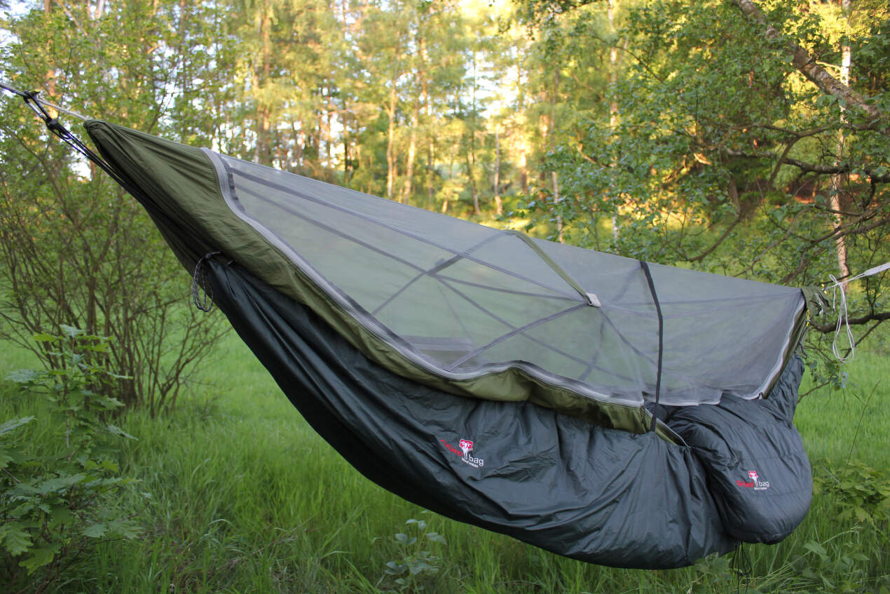 Dach nad głową w postaci plandeki również nie jest całkowicie nie na miejscu. Jeśli zależy nam na zrzuceniu zbędnych kilogramów, warto rozejrzeć się za kołdry i poduszki. Te dwa zastrzeżone elementy tworzą więcej niż pełnowymiarowy śpiwór dla każdego prawdziwego entuzjasty hamaków.