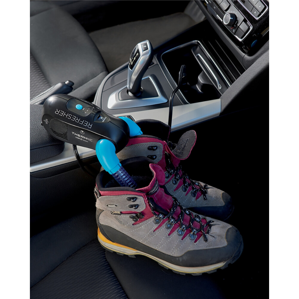 Praktyczny pomocnik nie tylko podczas zimowych aktywności. Podłącz suszarkę do butów i rękawic Thermic Refresher firmy Therm-ic do sieci elektrycznej (gniazdo samochodowe 12 V), a Twój sprzęt będzie suchy, bezwonny, wolny od bakterii i gotowy do użycia w ciągu kilku godzin. Suszarka ma dwa ramiona o regulowanej długości, światło UV, które zabija bakterie i wbudowany zegar. Umożliwia on ustawienie czasu suszenia od 1 do 3 godzin. Nadaje się do wszystkich rodzajów i rozmiarów butów(narciarskich, turystycznych lub do biegania), a także do rękawiczek.