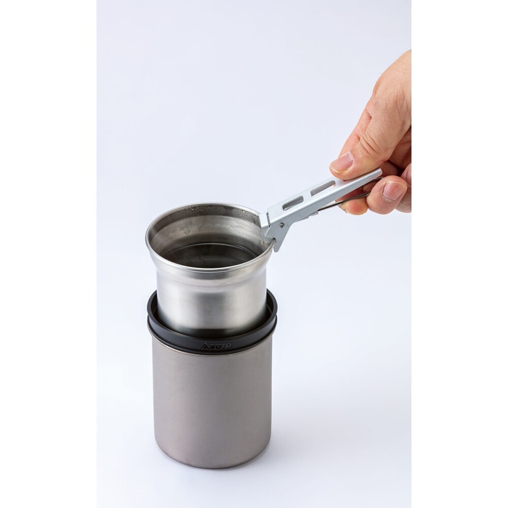 Wymiary wielofunkcyjnego zestawu Termostack są kompaktowe - przy średnicy 86 mm i wysokości 110 mm bez trudu zmieści się w plecaku. Całkowita waga wynosząca zaledwie 182 g oznacza, że nie musisz poświęcać wygody na rzecz sprzętu. Aby sprzęt był dobrze chroniony, zestaw zawiera również materiałowy pokrowiec. Zestaw kubków można uzupełnić o kompaktowy dzbanek SOTO o pojemności 750 ml, który może pomieścić zestaw wraz z komponentami, wkładem i zaparzaczem.