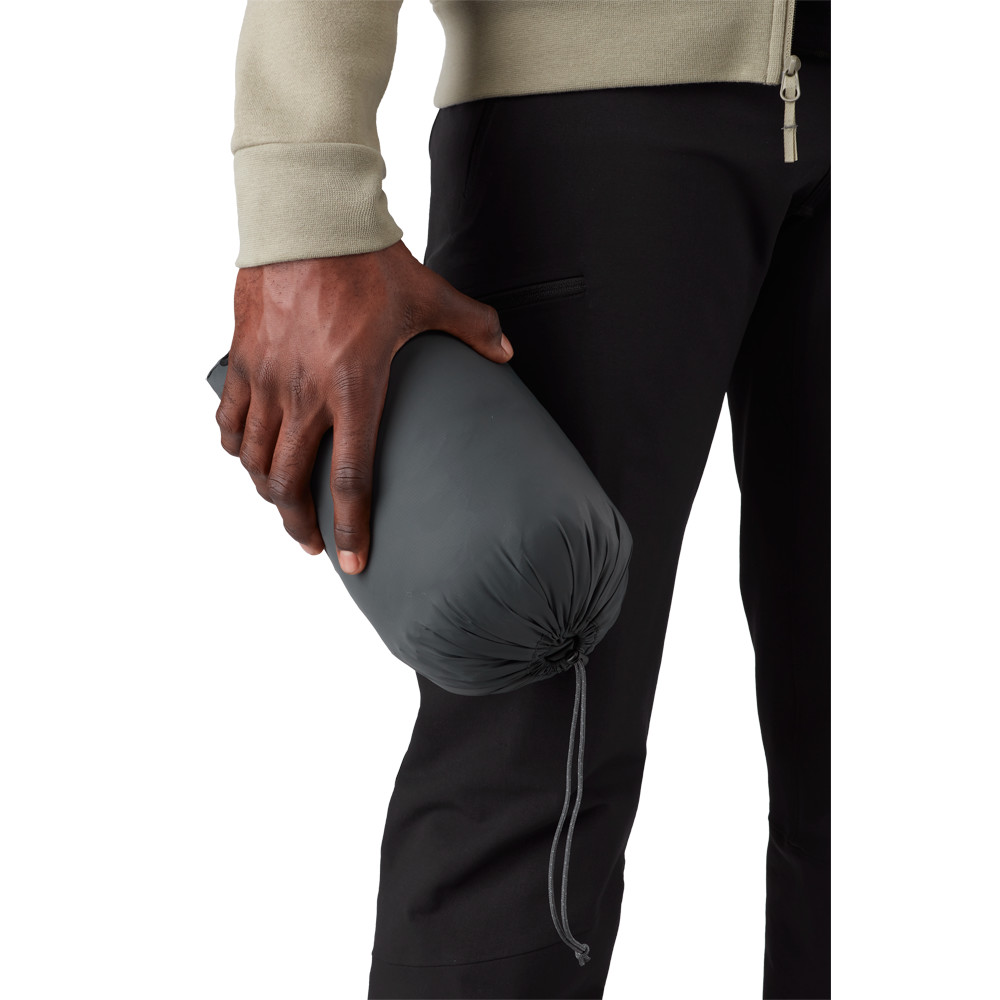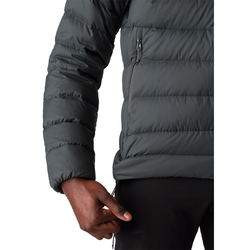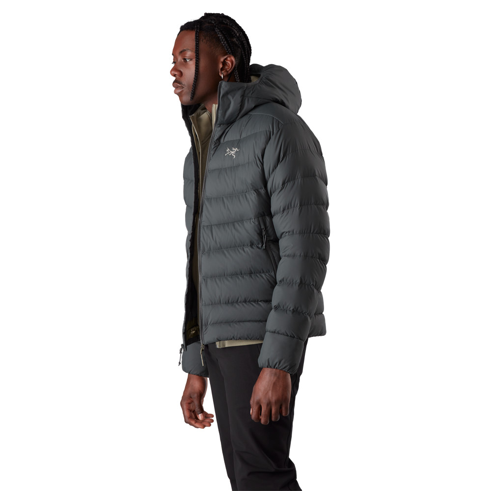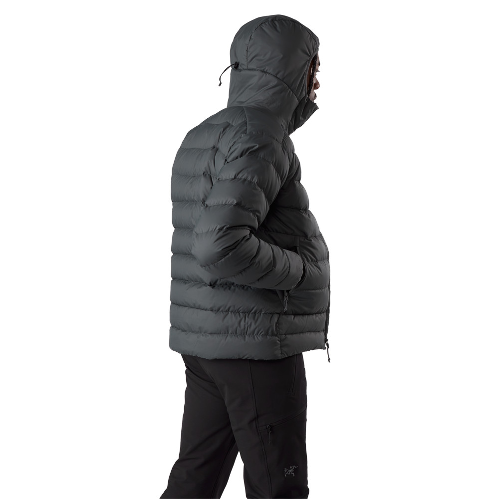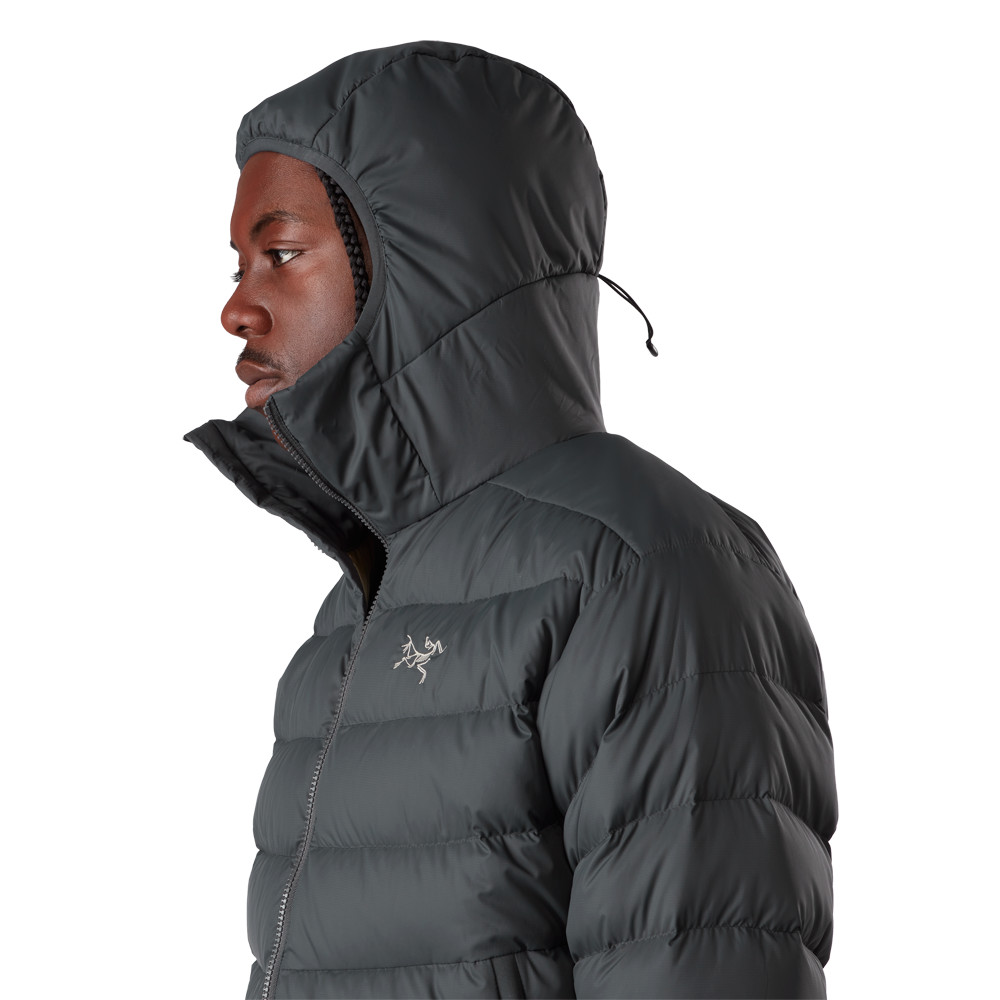 Męska ocieplana kurtka z kapturem od Arc´teryx. Ciepłe syntetyczne wypełnienie jest uzupełnione elastycznym materiałem polarowym po bokach, aby zapewnić lepszą oddychalność.