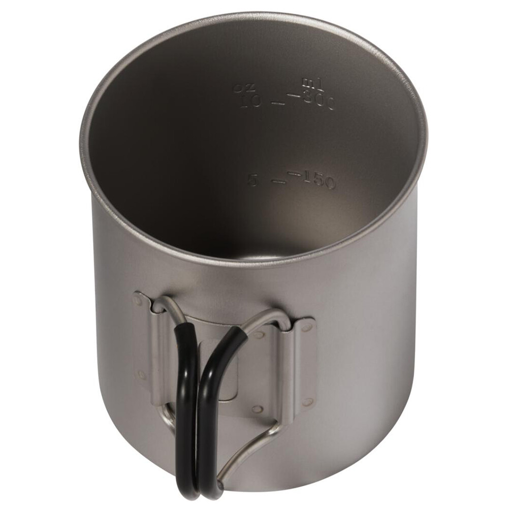 Titan Cup 450 ml posiada wewnętrzną skalę, która ułatwia pomiar objętości odwodnionej żywności i napojów. Pokryty silikonem składany uchwyt jest wygodny do trzymania, a zdejmowana silikonowa opaska chroni usta przed oparzeniami. Wystarczy założyć ją po zagotowaniu wody na kuchence. Dzięki naczyniom Titan możesz gotować na świeżym powietrzu, tak jak w domu. A jeśli zależy Ci na niskiej wadze, spakuj do plecaka kilka smakołyków z naszej gamy odwodnionej żywności, która jest gotowa na głodnych gości.