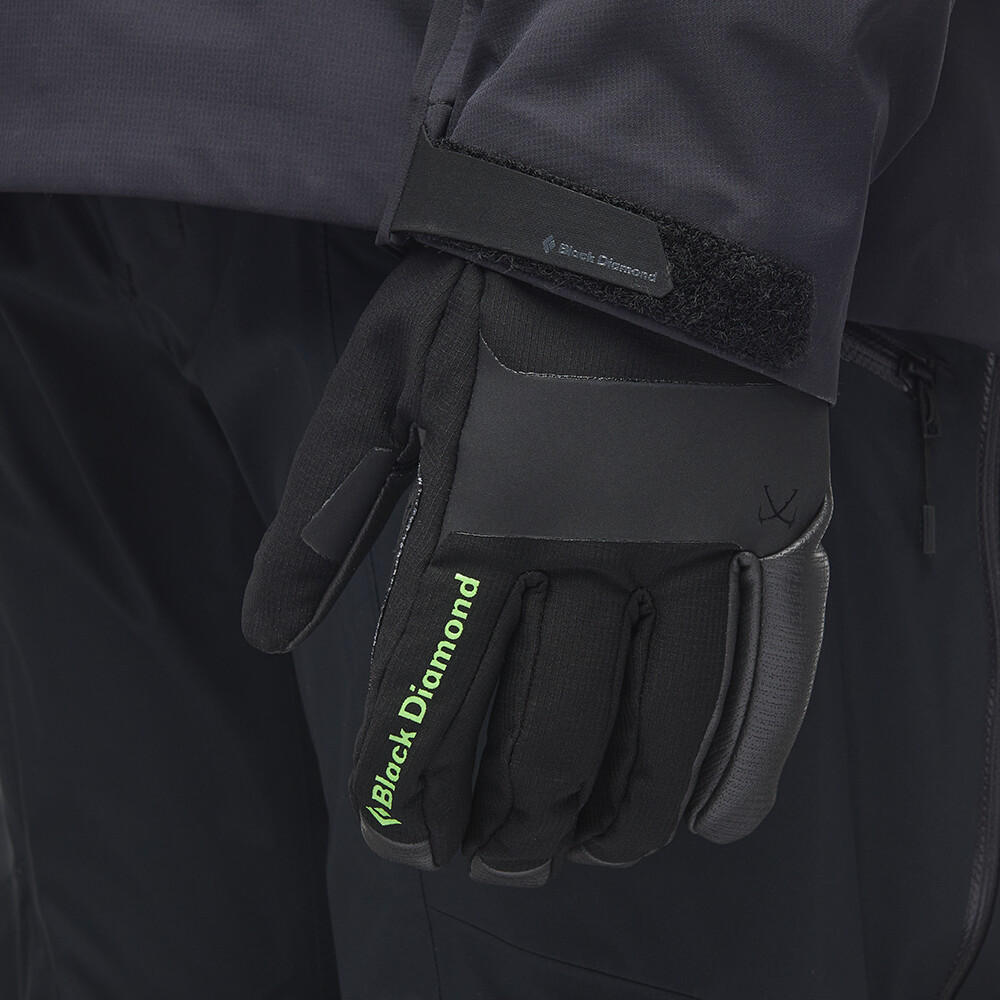 Grzbiet dłoni wykonano z wytrzymałego i oddychającego softshellu. Wnętrze wykonano z przyjemnego w dotyku szczotkowanego materiału. "Łatki" na kostkach i kciuku wykonane z materiału TPU chronią przed otarciami. Dłoń ze wstępnie ukształtowanym uchwytem i dobrą przyczepnością. Bezszwowa konstrukcja po stronie palców dla maksymalnego komfortu podczas wspinaczki z kilofami. Mankiet zapinany na rzep z otworem na karabinek.