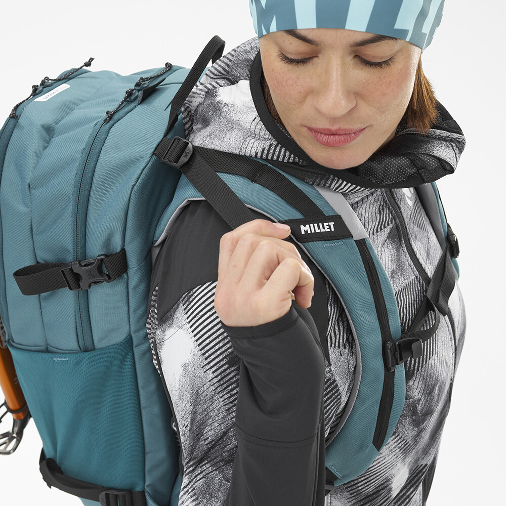 Plecak damski TOUR 22 marki Millet to kompaktowy i wytrzymały plecak techniczny na jednodniowe wycieczki narciarskie. Paski na ramiona i system pleców są dostosowane do kobiecej anatomii, dzięki czemu będziesz go wygodnie nosić. Ponadto ma wszystko, czego potrzebują delikatne narciarki i freeriderki, tj. uchwyty na narty, siekierę i kijki lub regulowany pas biodrowy z praktyczną kieszenią na baton energetyczny lub balsam do ust.