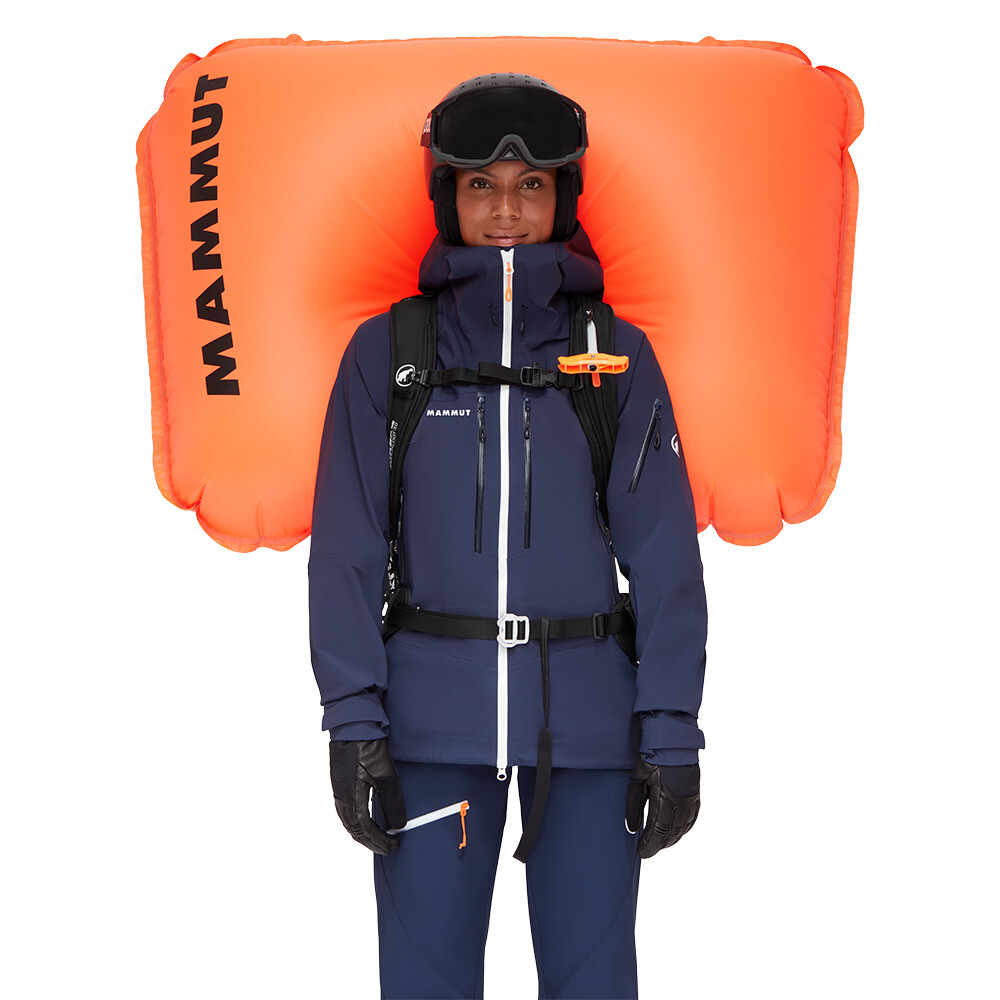 Plecak Tour 30 Removable Airbag 3.0 firmy Mammut zaskoczy Cię niską wagą, wygodnym systemem pleców i sprytnymi detalami, które uprzyjemnią Ci pobyt w górach. Rozmiar jest specjalnie dostosowany dla kobiet. Plecak ma krótsze plecy i węższe ramiączka. Pomarańczowe akcenty sprawiają, że jesteś widoczny nawet w gorszych warunkach. Duże wejście zapinane na zamek błyskawiczny zapewnia wszystko w zasięgu ręki i ułatwia znalezienie sprzętu nawet w rękawiczkach. Oczywiście możesz przymocować narty, snowboard lub splitboard. Jest też przezroczysta, oddzielna kieszeń na sprzęt lawinowy(sondę i łopatę).