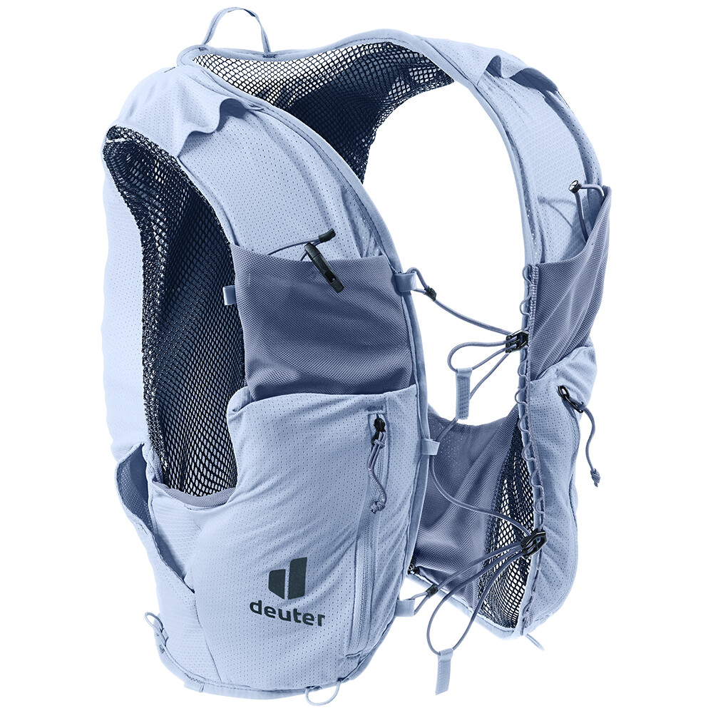 Damski plecak lub kamizelka do biegania Traick 5 SL firmy deuter pomoże Ci zabrać ze sobą wszystko, czego potrzebujesz, aby pokonać wybrany szlak. Posiada dwie przednie kieszenie na miękkie butelki, otwarte kieszenie i zapinane na zamek kieszenie na paskach naramiennych do przechowywania żeli energetycznych i batonów. Ciekawą funkcją jest oddzielna kieszeń na bukłak i zapinana na zamek kieszeń na kurtkę, którą można wyjąć bez konieczności zdejmowania plecaka z pleców. Do plecaka można również przymocować kijki do biegania lub wędrówek. Z przodu kamizelka ma regulowany elastyczny pas piersiowy, który zapewnia idealne dopasowanie podczas stromych podjazdów i szybkich biegów. Model SL jest dopasowany do drobnej, kobiecej sylwetki.