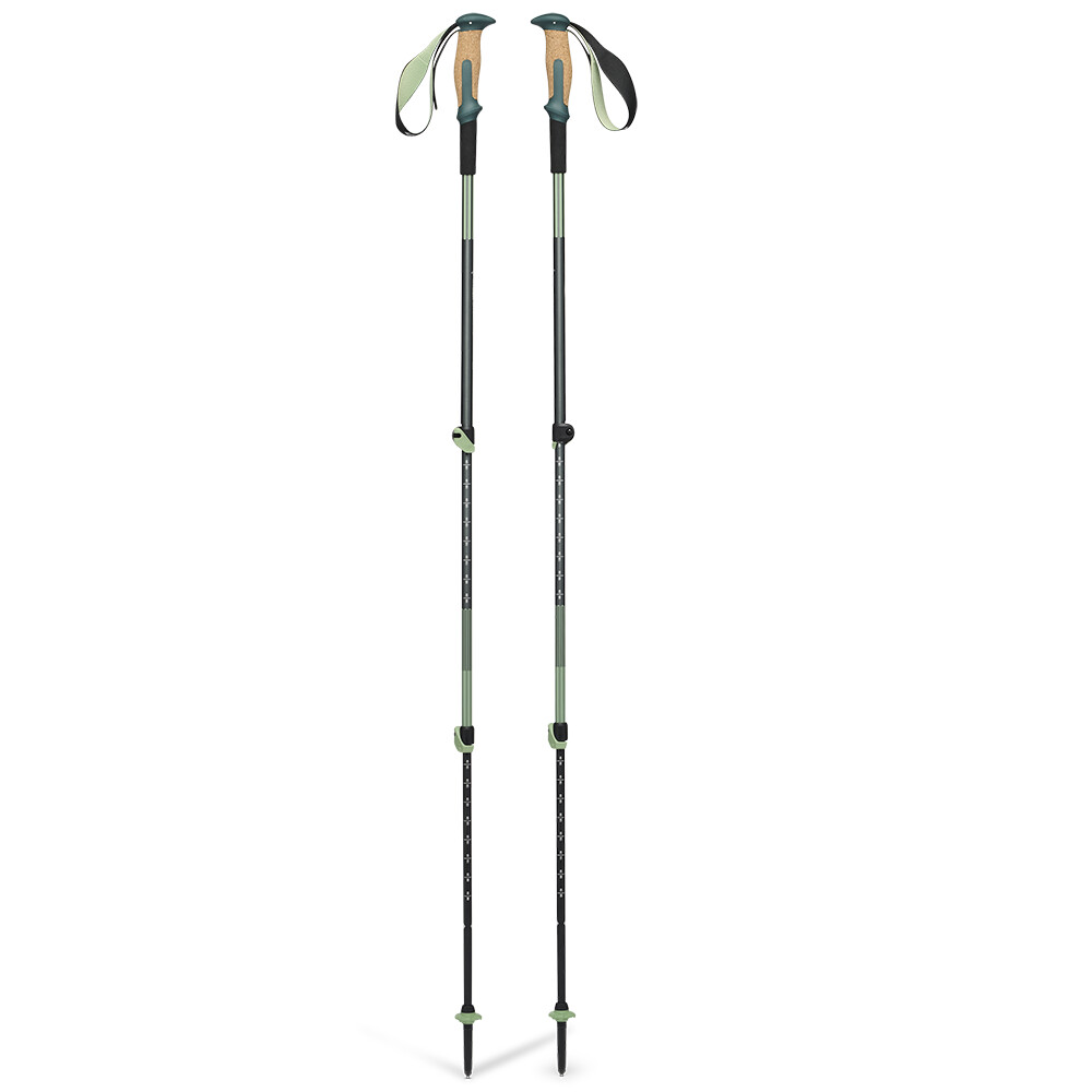 Kije trekkingowe pozwalają na pokonywanie kilometrów przy znacznie mniejszym zmęczeniu nadgarstków i łokci dzięki innowacyjnemu systemowi amortyzacji. Ergonomiczna rękojeść w połączeniu z przedłużonym uchwytem z pianki zapewnia dużą zmienność na każdym nachyleniu, a wytrzymałe aluminiowe rurki zapewniają stabilność nawet pod ciężarem ciężkiego plecaka ekspedycyjnego . Wymienne końcówki z węglików spiekanych zapewniają bezpieczne odbicie na każdej powierzchni, od błota po granit.