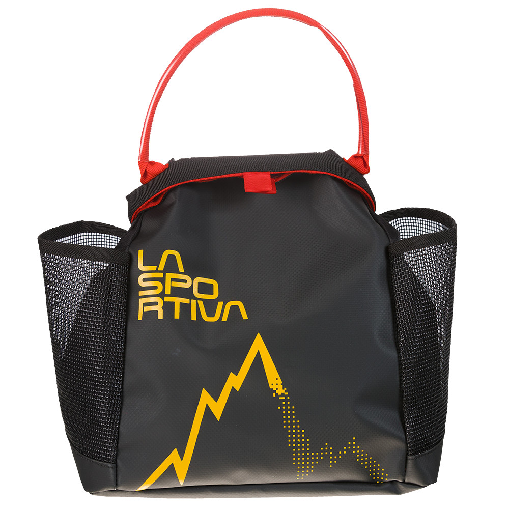 Woreczek na magnezję do boulderingu. Oprócz klasycznego zamykanego woreczka na magnezję, jest on wyposażony w dwie boczne kieszenie z siatki. Można je wykorzystać do przechowywania butów wspinaczkowych lub innego sprzętu.