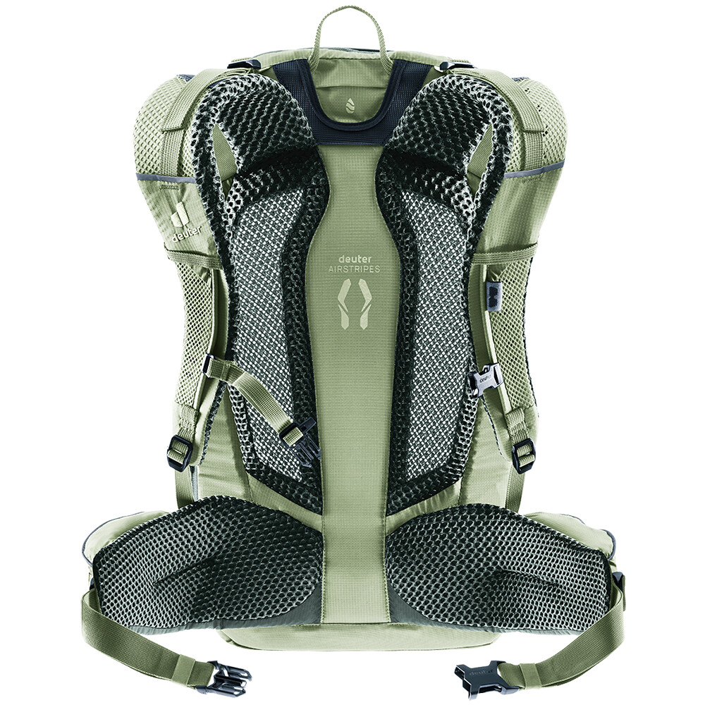 Trans Alpine Pro 28 posiada system pleców Airstripes, którego lekka konstrukcja z oddychającą siatką Air Spacer i minimalnym kontaktem z ciałem utrzymuje plecy w suchości nawet podczas długich, wymagających wspinaczek. Ergonomicznie ukształtowane, wyściełane paski na ramiona i aluminiowa rama X pomagają wygodnie rozłożyć obciążenie cięższych ładunków.