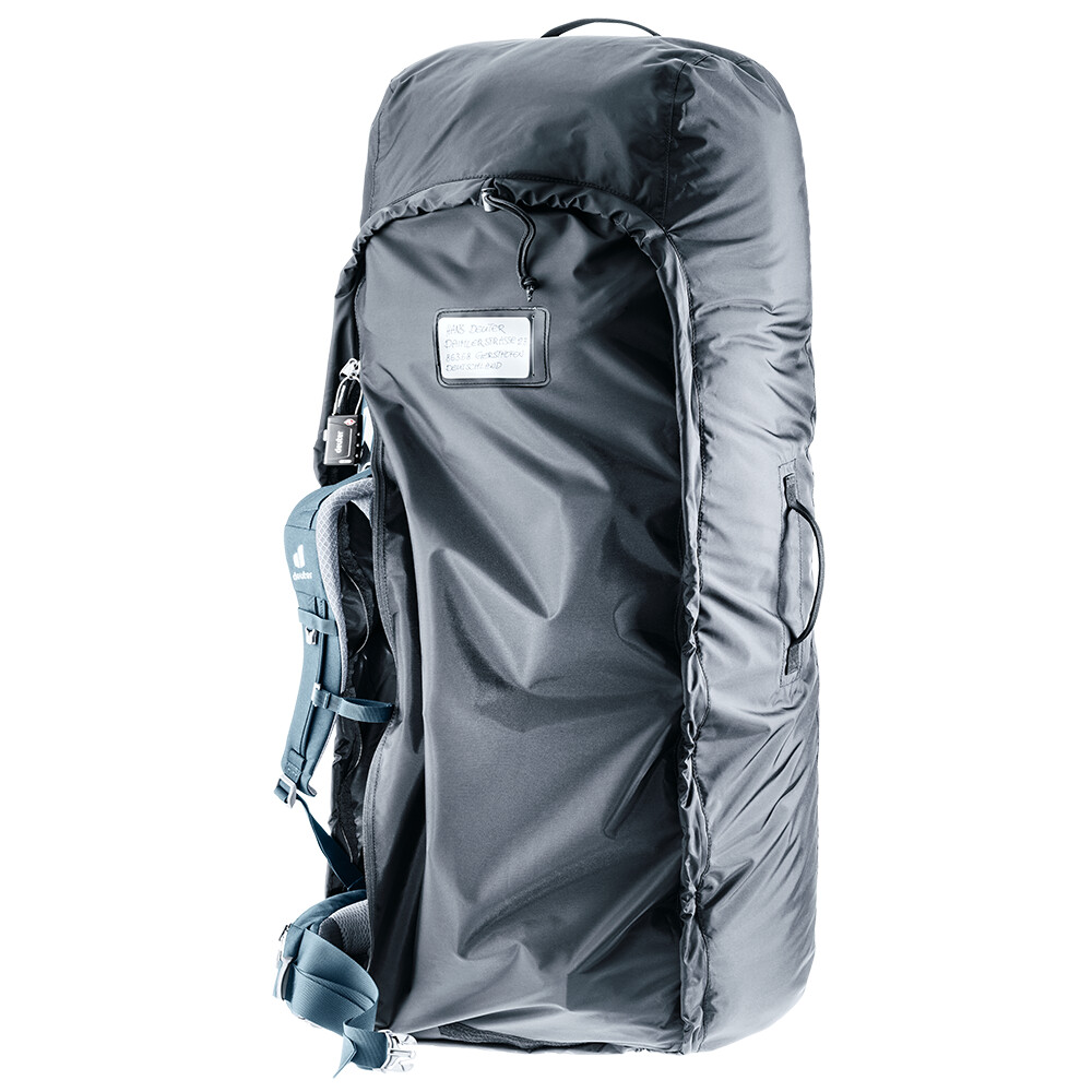 Pokrowiec transportowy firmy deuter jest wykonany z lekkiego materiału i jest przeznaczony do plecaków o pojemności do 90 l. Chroni bagaż przed uszkodzeniem i zabrudzeniem, a także działa jako osłona przeciwdeszczowa. Zamek błyskawiczny z tyłu umożliwia noszenie plecaka na plecach lub całkowite schowanie pasów naramiennych (podczas podróży samolotem). Plecak posiada boczne uchwyty ułatwiające przenoszenie ciężkiego bagażu.
