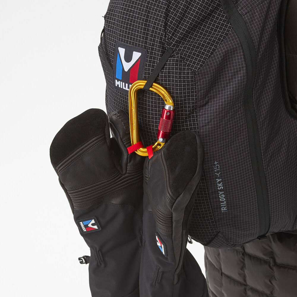 Rękawice freeride'owe Millet z membraną GTX, kozią skórą i syntetyczną izolacją. Świetnie dopasowane, wodoodporne i nie zgubią się dzięki pętelkom.