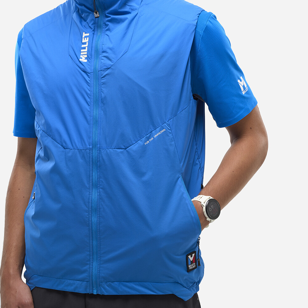 Kamizelka służy jako izolacja, jest ocieplona z przodu wełną (45 g). Materiał zewnętrzny wykonany jest z lekkiej wodoodpornej elastycznej tkaniny Toray®. Kurtka ma elastyczny tył z siatki, dzięki czemu można ją wygodnie nosić na plecaku. Kurtkę po prostu zapina się na kamizelkę. Raglanowy krój rękawów umożliwia wygodny i swobodny ruch ramion.