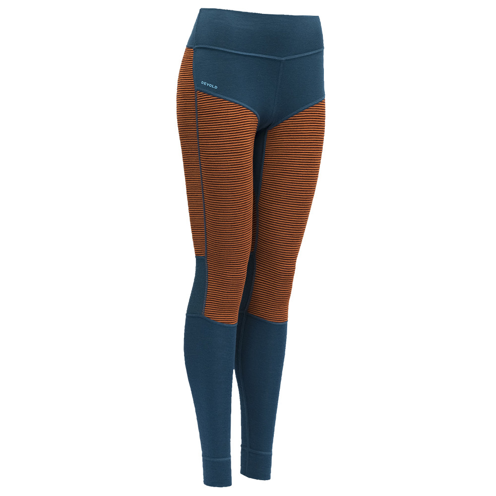 Damskie dwustronne funkcjonalne kalesony wełniane marki Devold, które powstały z połączenia trzech różnych dzianin. Pierwsza strona ma wysoką dzianinę przy skórze, która zatrzymuje więcej powietrza, a tym samym zwiększa komfort termiczny. Druga strona wykonana jest z gładkiej dzianiny, aby zapewnić wysoką oddychalność. Klasyczna prążkowana dzianina jest stosowana w ciepłych obszarach ciała, takich jak kolana, dolna część nogi i elastyczna talia. Jest bardzo lekka, a jednocześnie zachowuje właściwości termoizolacyjne. Pochłania wilgoć i utrzymuje ciało suche podczas ruchu. Szybkoschnąca dzianina siatkowa zapewnia szybkie odprowadzanie wilgoci z ciała. Można ją znaleźć na najbardziej potliwych częściach ciała, takich jak okolice kolan.