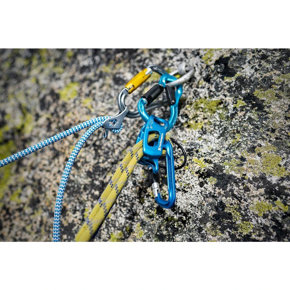 Łyżka asekuracyjna z możliwością asekuracji drugiego wspinacza w tarczy. W tym trybie asekuracja ma funkcję samoblokowania. Kanały w kształcie litery V z wyraźnymi rowkami gwarantują wystarczającą siłę hamowania dla różnych wytrzymałości liny. Szczególnie innowacyjna jest konstrukcja ucha zawieszenia, która umożliwia zawieszenie asekuracji równolegle do skały lub prostopadle do niej. Dzięki temu asekuracja jest zawsze we właściwej pozycji, niezależnie od tego, czy jest zatrzaśnięta w pierścieniu, czy w uchu borhaka.