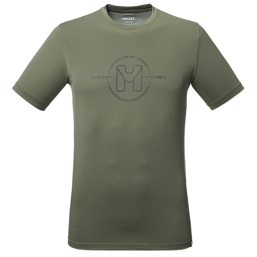 Męska koszulka sportowa Millet jest oddychająca i szybkoschnąca. Koszulka ma okrągły dekolt, krótkie rękawy i nadruk na piersi.