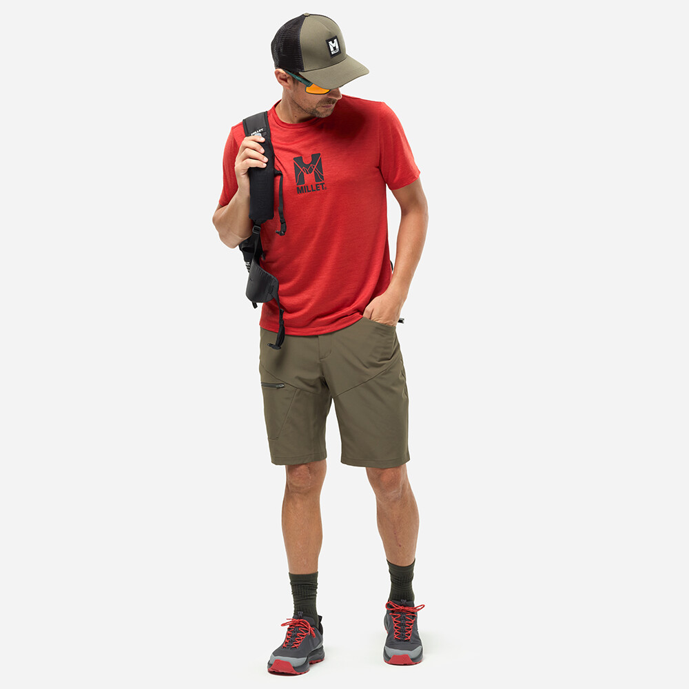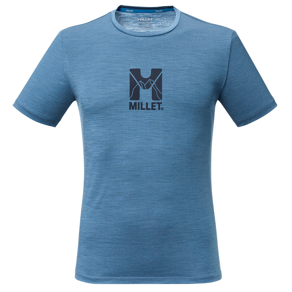 Koszulka łączy w sobie wełnę merino i poliester, zapewniając miękkość, wygodę i trwałość. Materiał skutecznie reguluje temperaturę ciała i odprowadza wilgoć, dzięki czemu koszulka zapewni Ci komfort podczas całodziennych aktywności. Klasyczny krój z okrągłym dekoltem i krótkimi rękawami oferuje wygodne dopasowanie i swobodę ruchów. Matowy nadruk z logo Millet zdobi klatkę piersiową, uzupełniony inspirowanymi górami liniami, które podkreślają górski charakter i ducha marki.