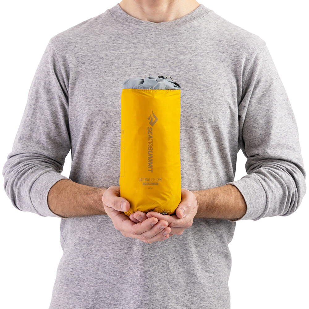 Fani minimalizmu i ultralekkiego sprzętu docenią Ultralight XR Insulated Mat od Sea to Summit. Zajmuje minimalną ilość miejsca w plecaku, a przy wadze 415 g (zwykły model) nawet nie będziesz wiedział, że tam jest. Jej ogromną zaletą jest idealna równowaga pomiędzy niską wagą, komfortową grubością i doskonałymi właściwościami izolacyjnymi. Technologia ThermalCore skutecznie ogranicza ucieczkę ciepła i zapewnia komfort nawet w chłodniejsze noce. Konstrukcja komór została zaprojektowana tak, aby równomiernie rozkładać ciężar ciała i zapewniać stabilne i wygodne podparcie podczas snu. W zestawie znajduje się pokrowiec z pompką, który umożliwia szybkie napompowanie materaca bez zbędnej wilgoci z oddechu.