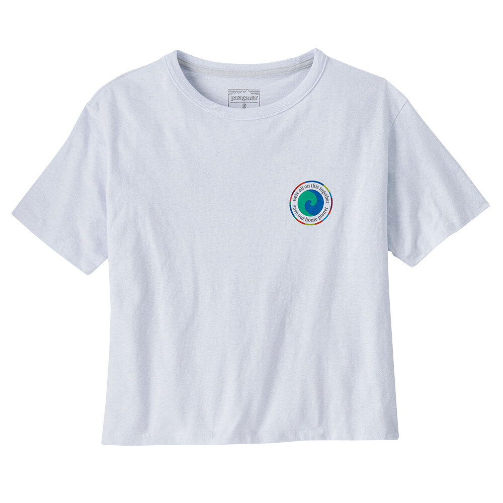 Damska koszulka Patagonia Unity Fitz Easy Cut Responsibili-Tee jest wykonana z materiału pochodzącego z recyklingu, który zmniejsza zależność od pierwotnych surowców, o czym świadczy obraz na koszulce, którego celem jest "ratowanie naszej rodzimej planety". Koszulka została wyprodukowana w fabryce Fair Trade Certified ™.