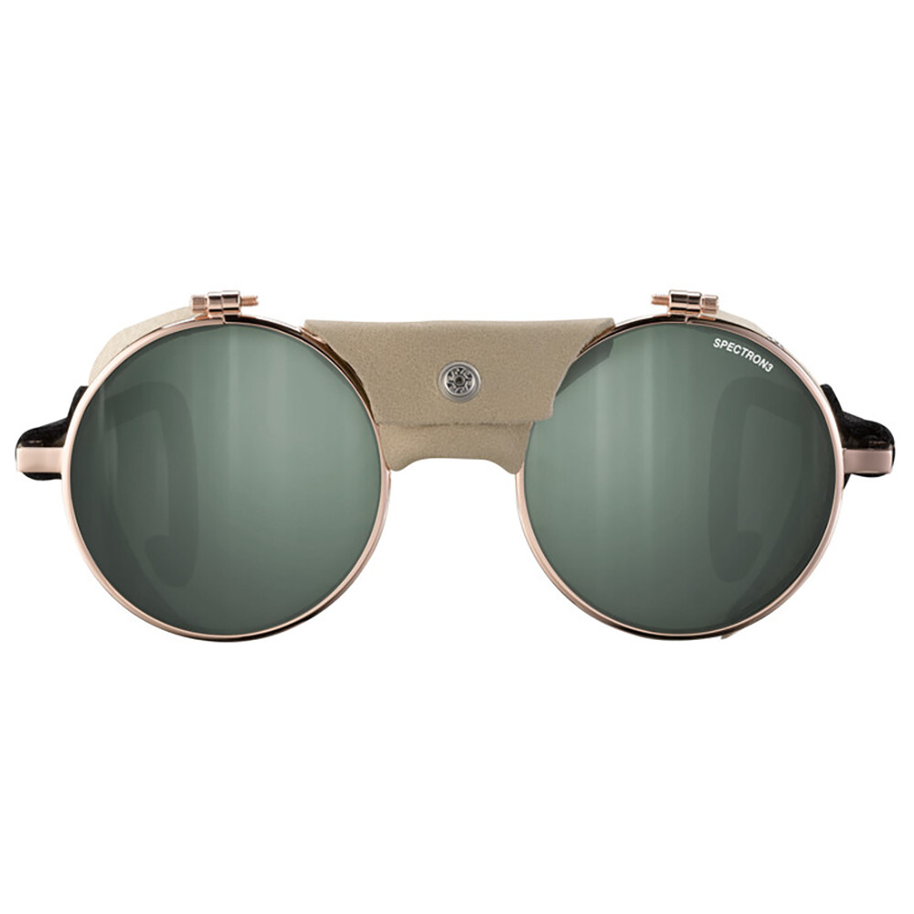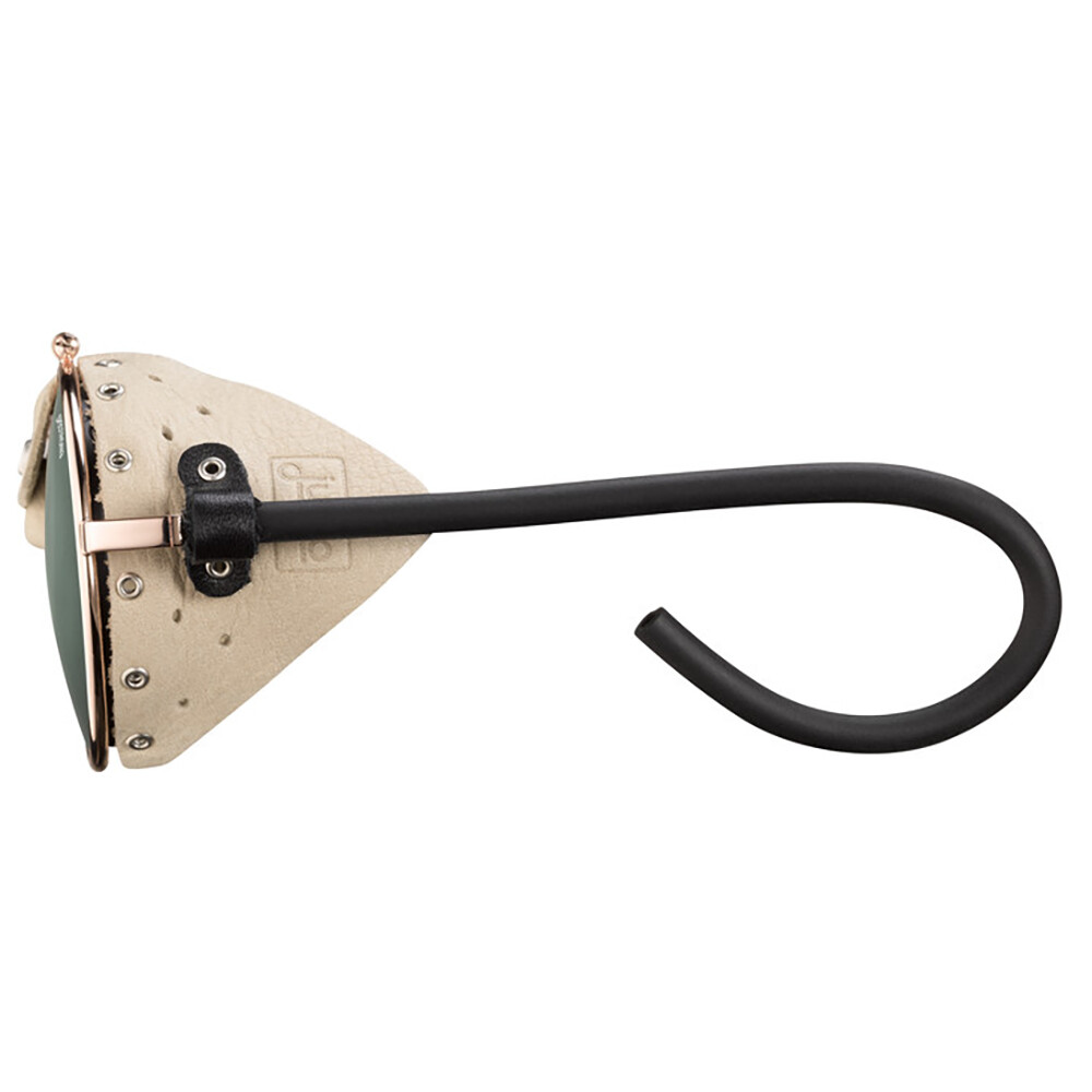 Klasycznie "skrojone" gogle lodowcowe z zaokrąglonymi soczewkami, elastycznymi zausznikami i skórzanymi bokami. Soczewka z filtrem przeciwsłonecznym 3 chroni oczy i przepuszcza 13% światła widzialnego. Dzięki bocznym osłonom oczy są chronione również z boków.