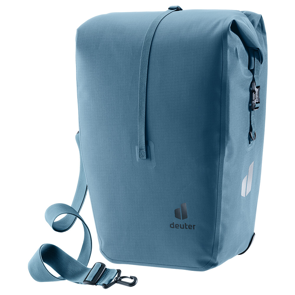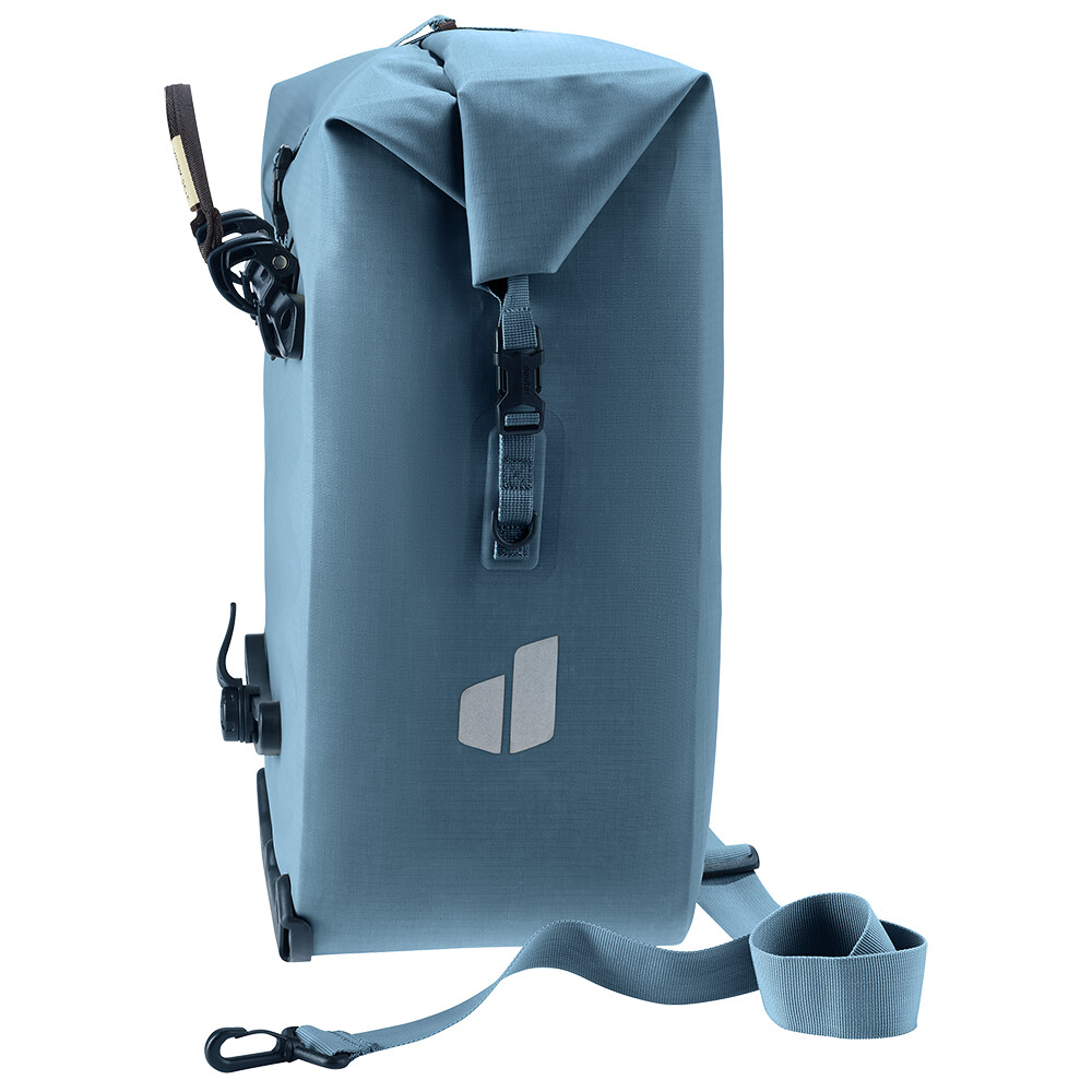 Torba rowerowa deuter jest idealna dla tych, którzy jeżdżą rowerem do pracy, szkoły lub do miasta na zakupy. Dzięki szynie i hakom można ją łatwo przymocować do tylnego bagażnika rowerowego, a dzięki odpinanemu paskowi na ramię można ją równie łatwo zabrać ze sobą do sklepu lub miejsca pracy. Wykonana jest z wodoodpornego materiału, wewnątrz znajdziesz przegródki na dokumenty lub tablet, a dzięki zwijanemu zamknięciu możesz zwiększyć jej pojemność nawet o 5l.