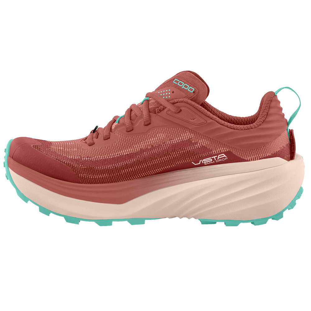 Vista to doskonale amortyzowane damskie buty trailowe amerykańskiej marki Topo Athletic. Bieganie lub długie marsze w terenie, wędrówki, podróże, codzienne spacery, poradzi sobie ze wszystkim. Krótko mówiąc, idealny wybór dla tych, którzy szukają wygodnego, pojemnego i stylowego buta na co dzień.