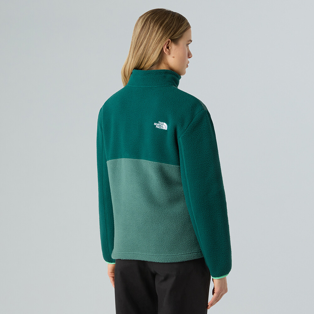 Dzięki miękkiemu materiałowi z polaru zapewnia przyjemne ciepło i komfort przez cały dzień. Bluza ma zamek błyskawiczny z przodu na całej długości, bezpieczne kieszenie zapinane na zamek na piersi i po bokach oraz elastyczne zakończenia rękawów dla lepszego dopasowania i ochrony przed wiatrem. Projekt uzupełniają subtelne haftowane logo TNF na piersi i tylnym ramieniu.