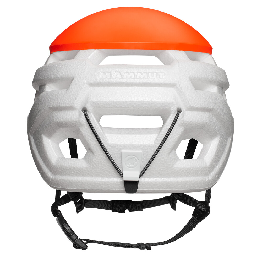 Najwyższej klasy kask wspinaczkowy Wall Rider szwajcarskiej marki Mammut o bardzo niskiej wadze, uzyskanej dzięki zastosowaniu materiału EPP i absolutnie minimalistycznego systemu zapinania. Aby uzupełnić doskonałe właściwości tłumiące materiału EPP, górna część kasku jest wzmocniona skorupą ABS, zapewniając w ten sposób maksymalne bezpieczeństwo. Posiada również kilka dużych otworów wentylacyjnych, które pomagają wspinaczom zachować chłodną głowę w trudnych sytuacjach. Unikalny kształt i indywidualnie regulowany system zapinania zapewniają idealne dopasowanie kasku do głowy. Dwa uchwyty z przodu i elastyczny pasek z tyłu służą do wygodnego mocowania czołówki. Jest dostępny w dwóch rozmiarach, dla obwodu głowy: 52-57 cm i 56-61 cm.