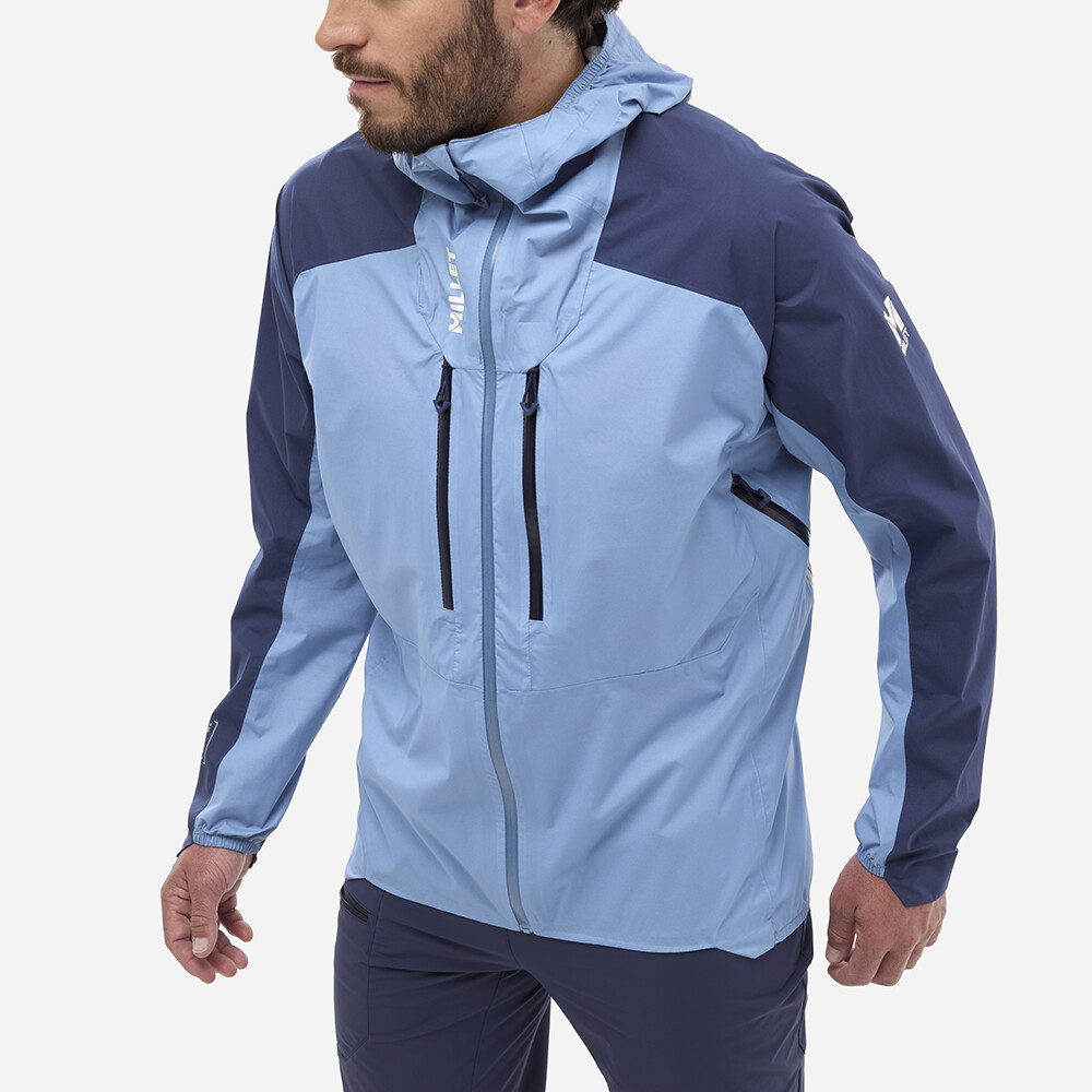 Kurtka męska Kamet GTX Pro francuskiej marki Millet to najlepsza wodoodporna warstwa do wspinaczki górskiej - trójwarstwowa GORE TEX Pro, kompatybilna z kaskiem, wodoodporne zamki YKK, zamki wentylacyjne i ergonomiczne dopasowanie.