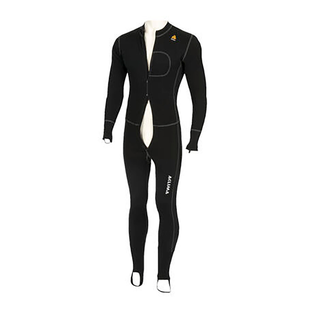 Kombinezon ma praktyczny dwukierunkowy zamek błyskawiczny z przodu i drugi z tyłu wokół pleców aż do uda. Dzięki temu toaleta nie będzie problemem. WarmWool to dzianinowy materiał, elastyczny i rozciągliwy. Aby zapobiec podwijaniu się rękawów lub nogawek, należy ściągnąć elastyczne mankiety, a kombinezon pozostanie na swoim miejscu przez cały czas aktywności.