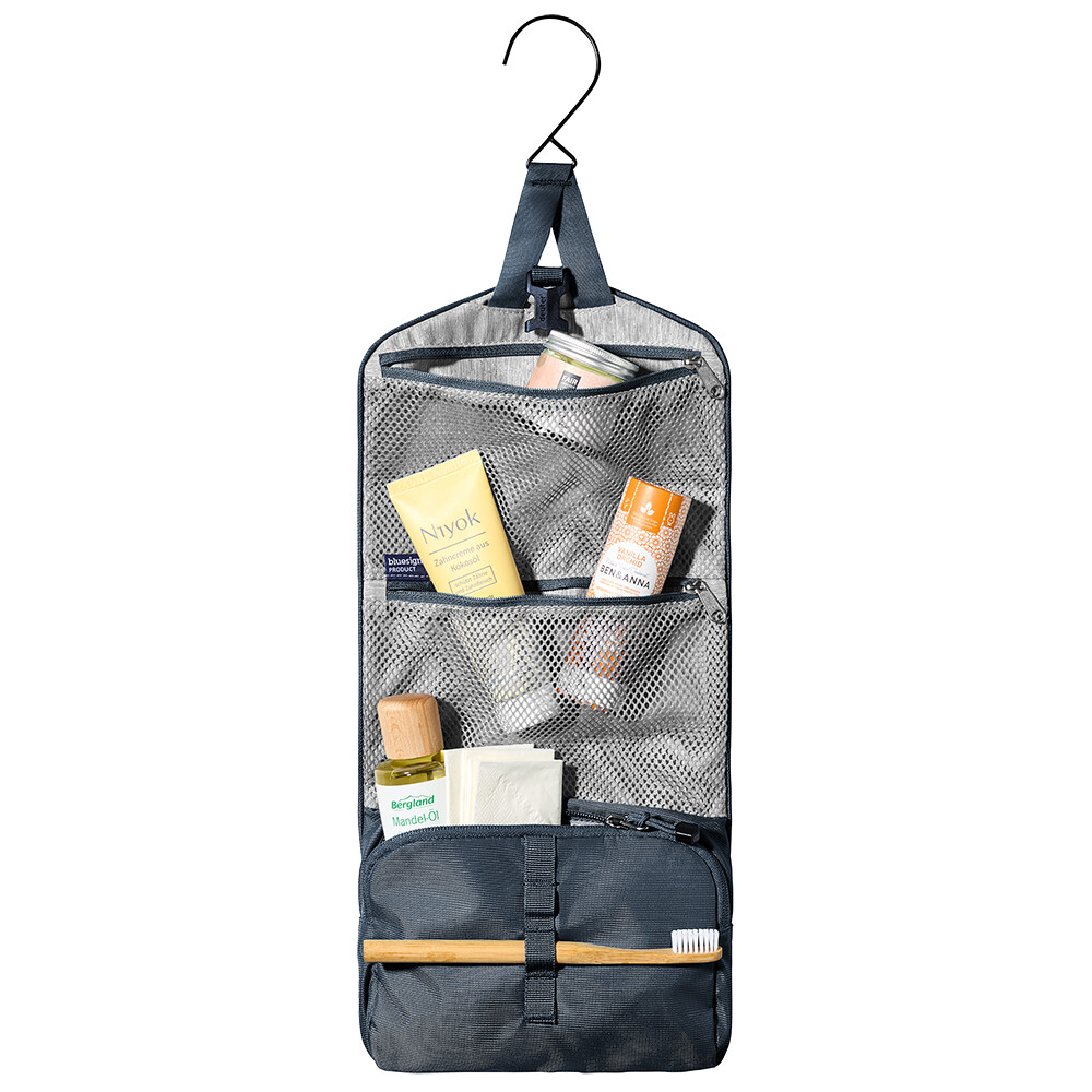 Torba deuter Wash Bag I posiada odczepiany haczyk, dzięki czemu można ją zawiesić w łazience lub w różnych miejscach (na przykład na gałęzi) podczas podróży. Duża komora zapinana na suwak i dwie kieszenie z siatki zapinane na suwak umożliwiają przejrzystą organizację. Zapięcie na klamrę zapewnia bezpieczne przechowywanie zawartości, a elastyczne pętle mogą być używane do szczoteczki do zębów i mniejszych przyborów toaletowych.
