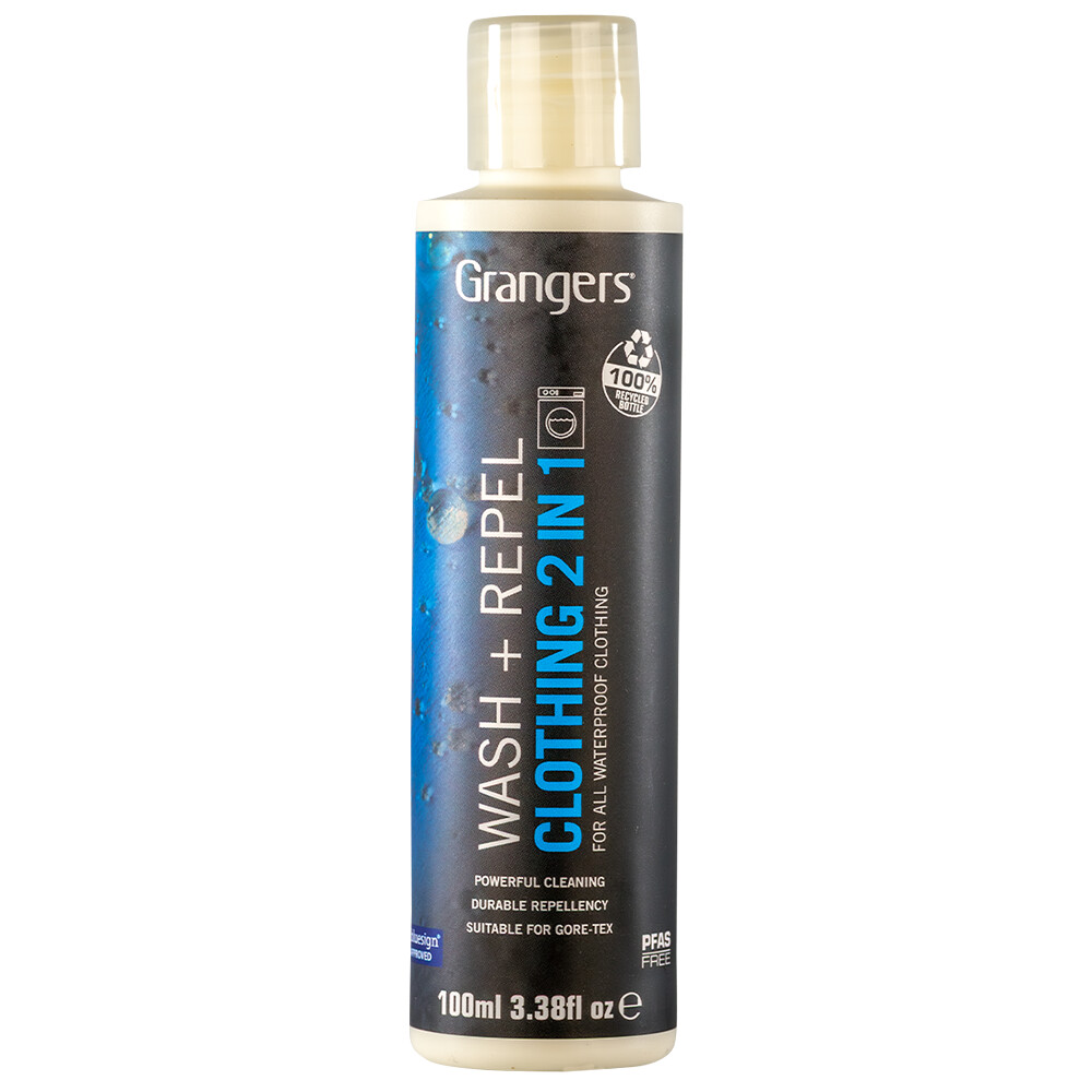 Specjalnie opracowany przez Grangers środek Wash Repel Clothing 2 in 1 100 ml czyści i impregnuje w jednym cyklu prania. Idealny do regularnej konserwacji wszelkiej odzieży technicznej, w tym odzieży z membraną GORE-TEX® i innych wodoodpornych materiałów.