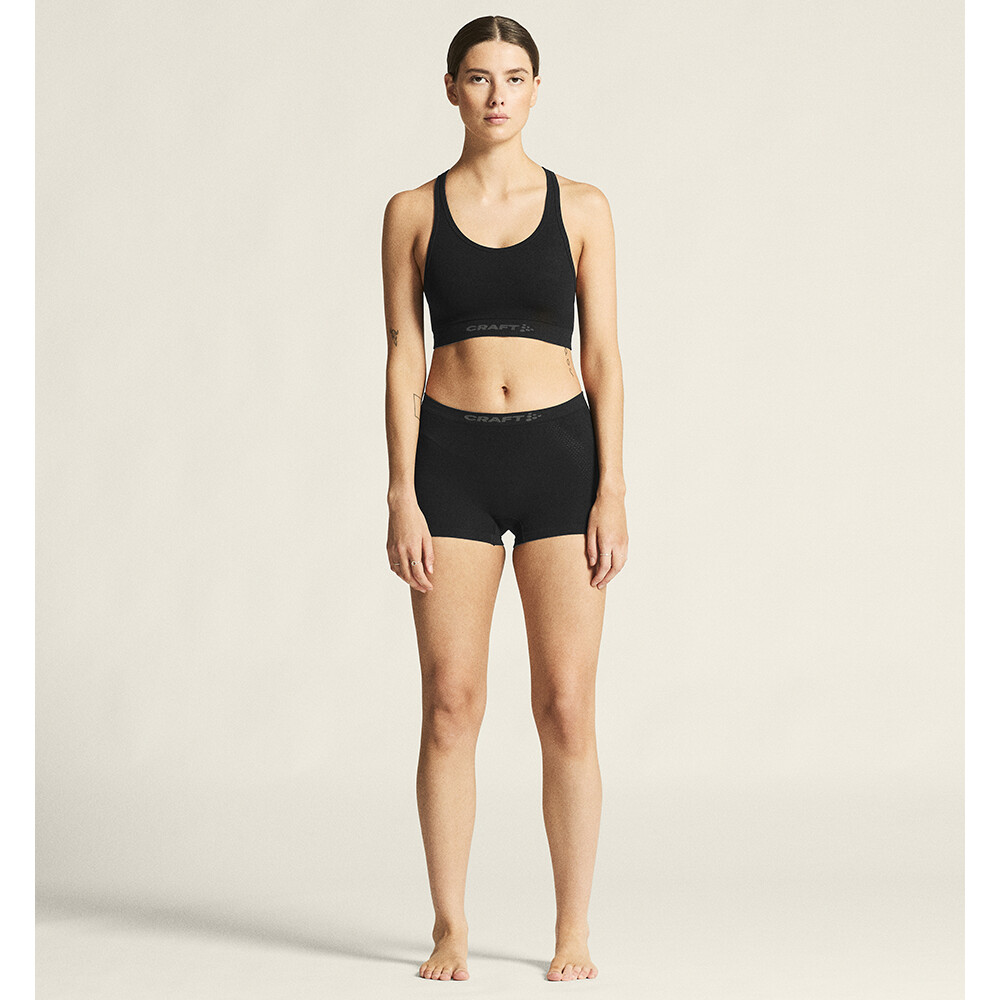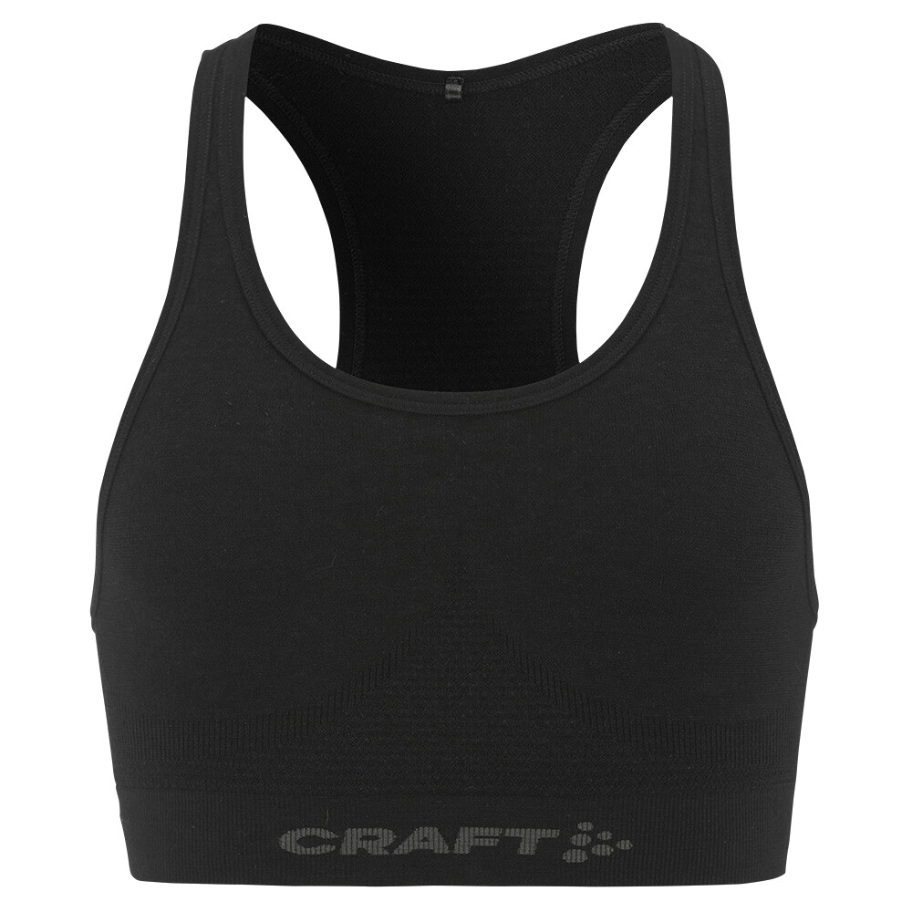 Damski biustonosz sportowy Wool Seamless Bra szwedzkiej firmy Craft z wełną Merino, odpowiedni do noszenia przez cały rok. Jest lekki, oddychający i zapewnia niezbędny komfort.