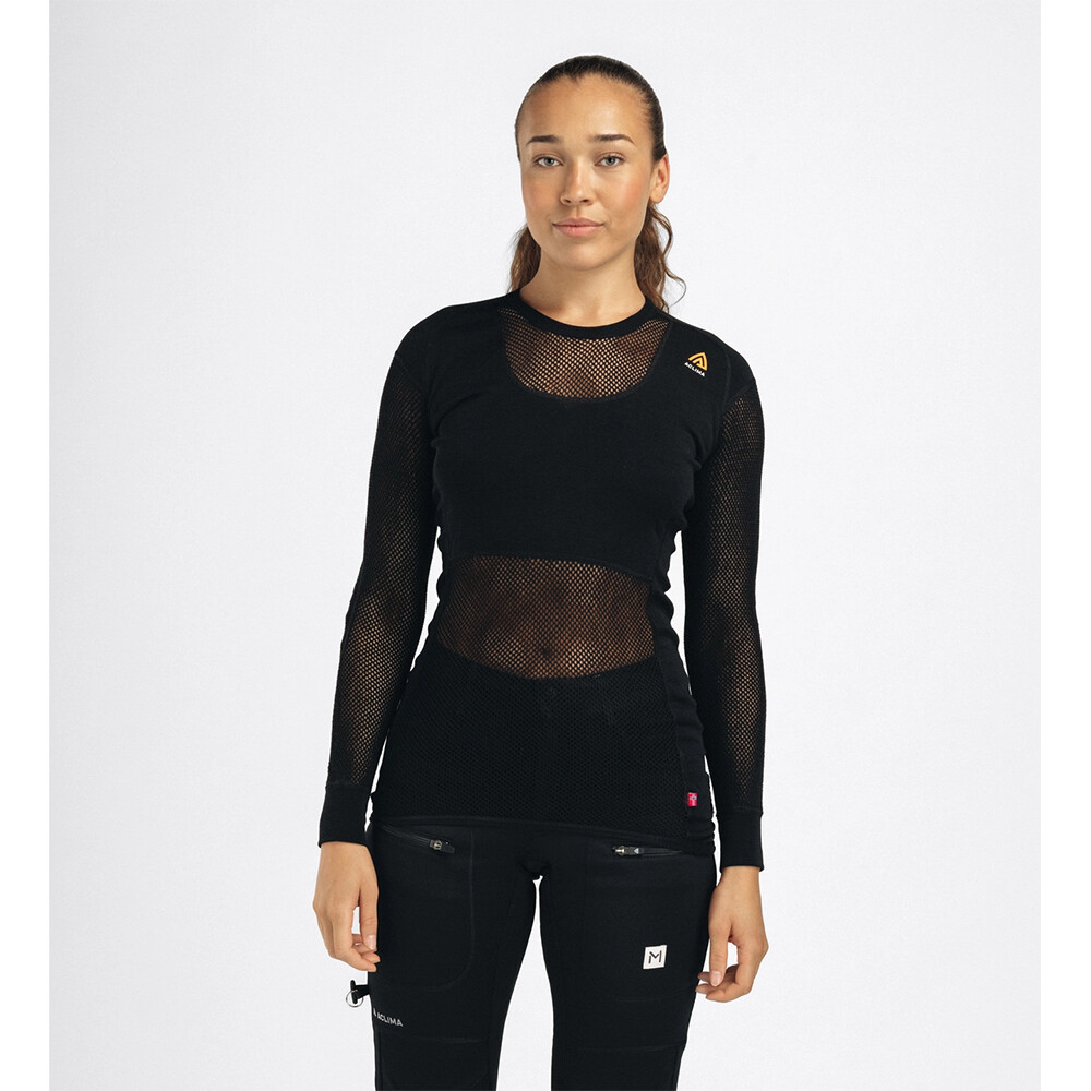 Damska koszulka WoolNet Crewneck marki Aclima to lekki siateczkowy element, który w 100% współpracuje z Twoim ciałem. Koszulka wykonana jest z oryginalnej wełnianej tkaniny siatkowej WoolNet, która zatrzymuje nadmiar ciepła, jednocześnie uwalniając je do innych warstw. To sprawia, że ten wełniany element jest idealnym wyborem dla maksymalnej wentylacji i regulacji temperatury podczas rygorystycznych zajęć sportowych. Dlaczego w ogóle siatka? Ponieważ doskonale odprowadza wilgoć, niezwykle szybko schnie, a jednocześnie tworzy kieszenie powietrzne, które bardzo dobrze izolują bez uczucia lepkości lub zbytniego ciepła. Tak więc, dziergając włókno wełniane w siatce, uzyskujemy wyjątkowe korzyści w postaci najwyższego komfortu.