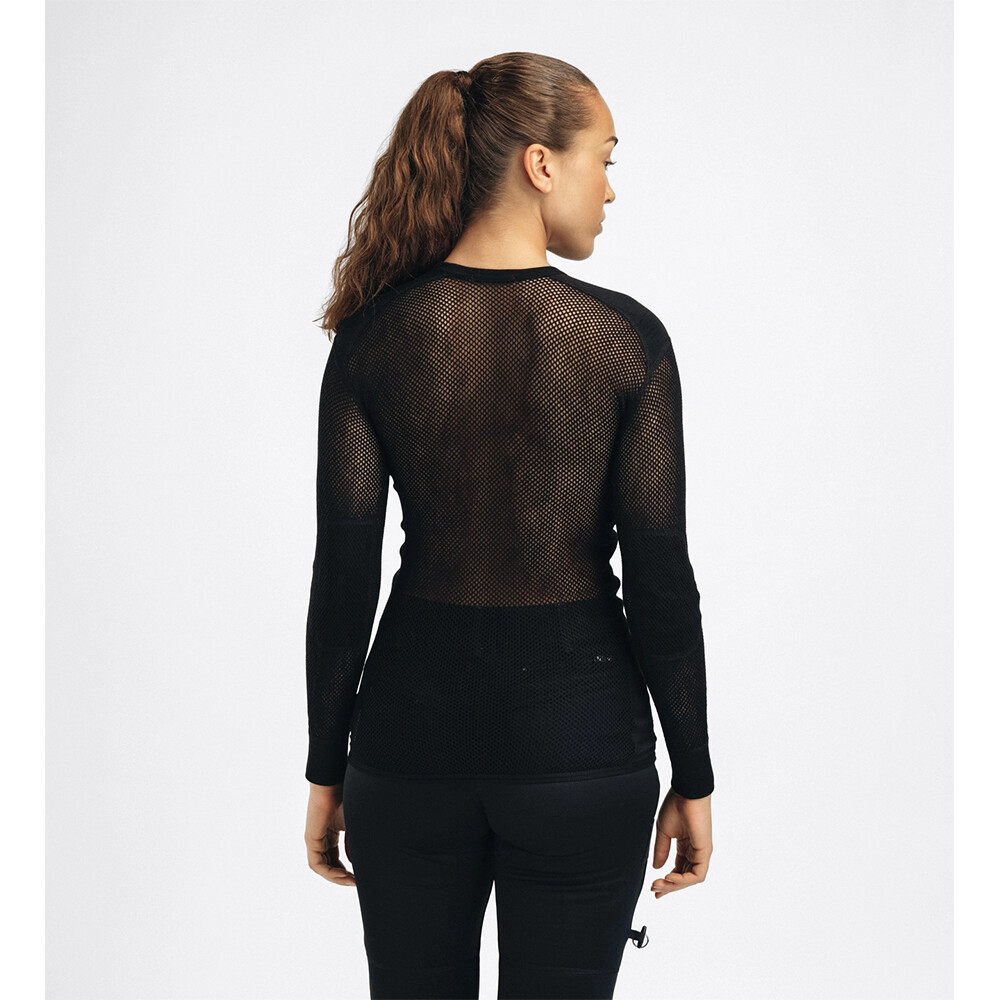 WoolNet Crewneck Women's Round Neck Long Sleeve Mesh Shirt posiada wzmocnienia na łokciach i prążkowaną dzianinę na ramionach, aby chronić przed dyskomfortem związanym z paskami na ramiona plecaka i ogólnym zużyciem. Koszulka jest odpowiednia do wszystkich aktywności o wysokiej aktywności, od alpejskich wędrówek zimą, długich górskich wędrówek, trudnych i mniej wymagających wędrówek i wypraw po polowanie i wędkarstwo.