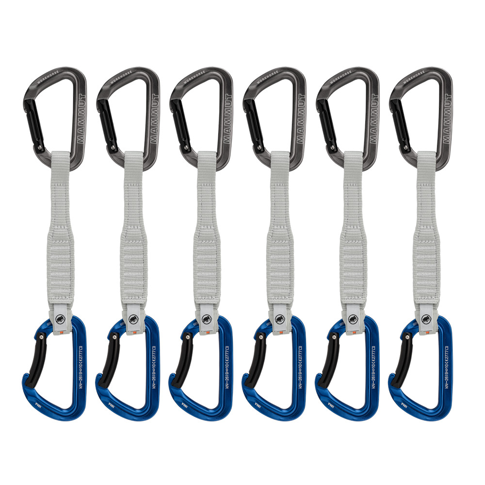 Zestaw sześciu ekspresów marki Mammut. Dzięki solidnej konstrukcji karabinka i taśmy, ekspresy Workhorse wzbudzają prawdziwą pewność siebie i z pewnością zostaną docenione we wszystkich rejonach skalnych, które nie oferują gęstej asekuracji. Pasek o długości 17 cm sprawdzi się w tradycyjnie asekurowanych miejscach lub podczas wspinaczki w górach.